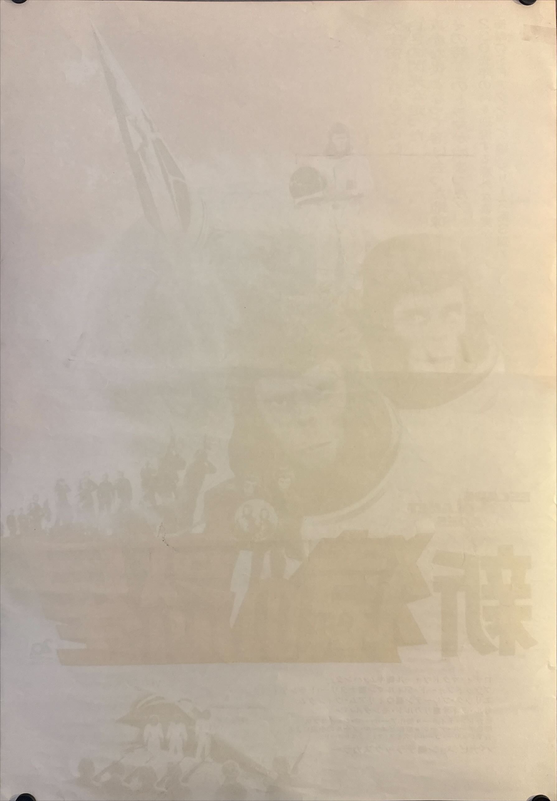 This is an original Japanese B2 theatrical poster printed in 1971 for the first Japanese release of Escape from the Planet of the Apes. A genuine cinema display sheet produced for theatres in Japan.