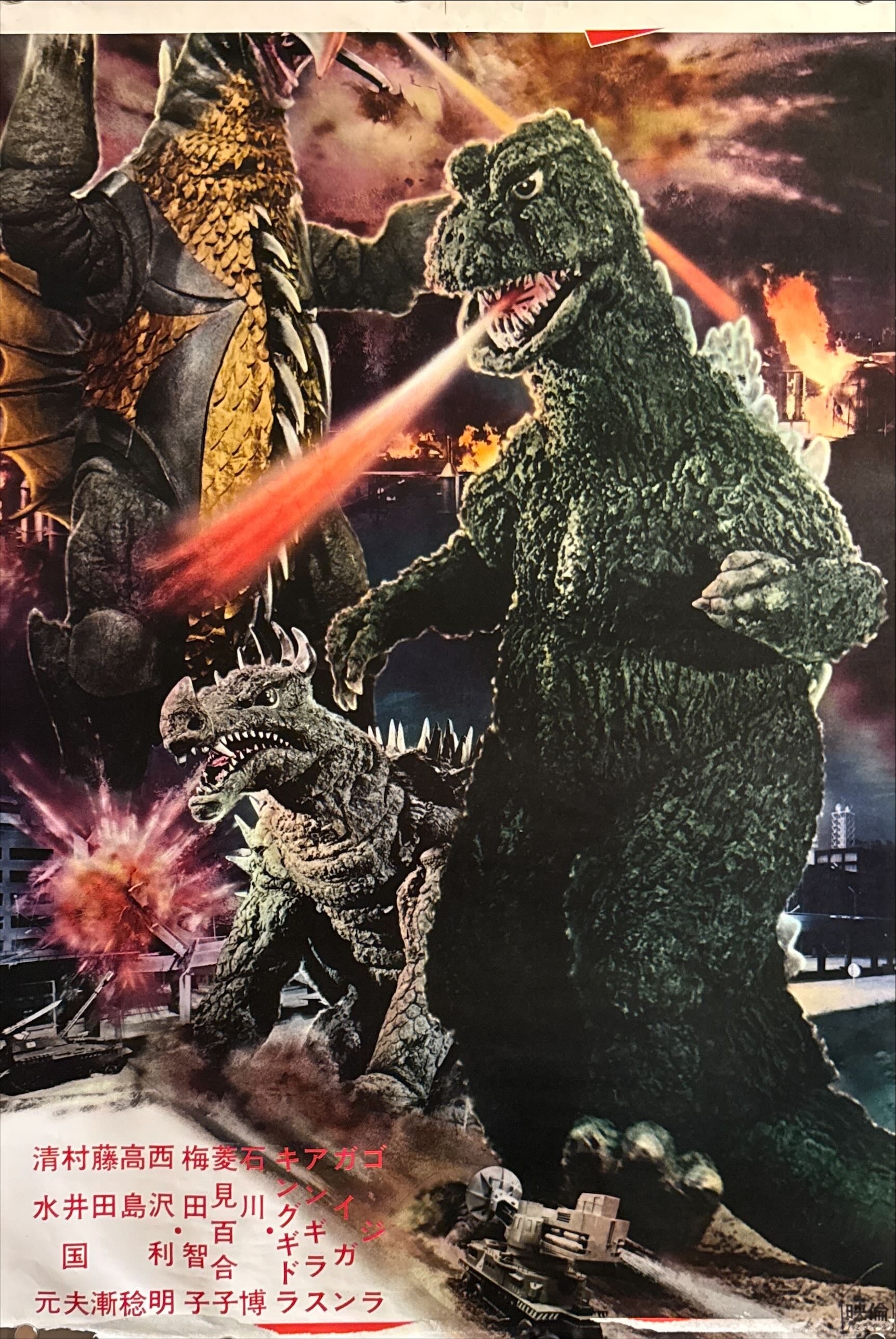 This is an original Japanese STB tatekan (two-panel standing) poster printed in 1972 for the first Japanese theatrical release of Godzilla vs. Gigan, released domestically as 地球攻撃命令 ゴジラ対ガイガン (“Earth Destruction Directive: Godzilla vs. Gigan”). Directed by Jun Fukuda, produced by Tomoyuki Tanaka, with special effects by Teruyoshi Nakano, and scripted by Shinichi Sekizawa and Takeshi Kimura, the film is the 12th entry in the Godzilla franchise and a key early-’70s Toho kaiju title—uniting Godzilla, Gigan, Anguirus, and King Ghidorah in one of the era’s most action-forward monster line-ups. It is also historically significant as the final Godzilla performance by Haruo Nakajima, who had portrayed the character since the original 1954 film.