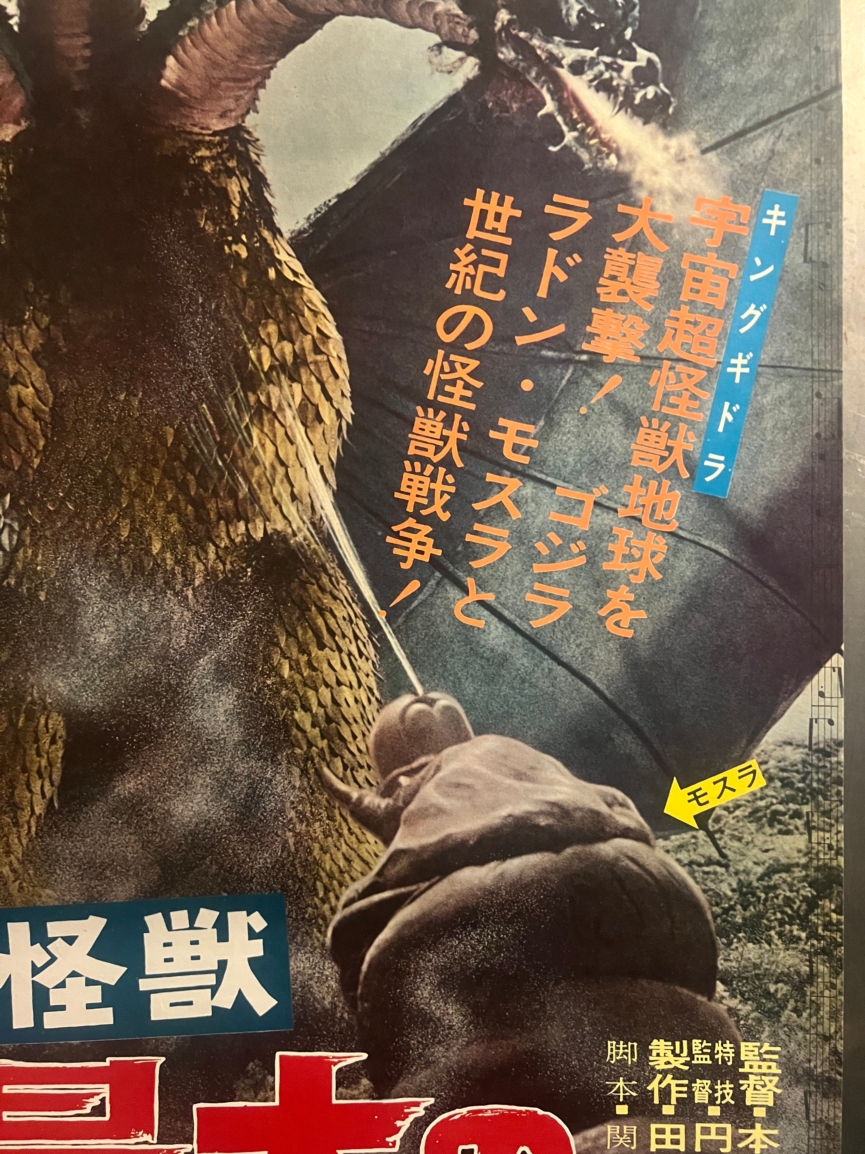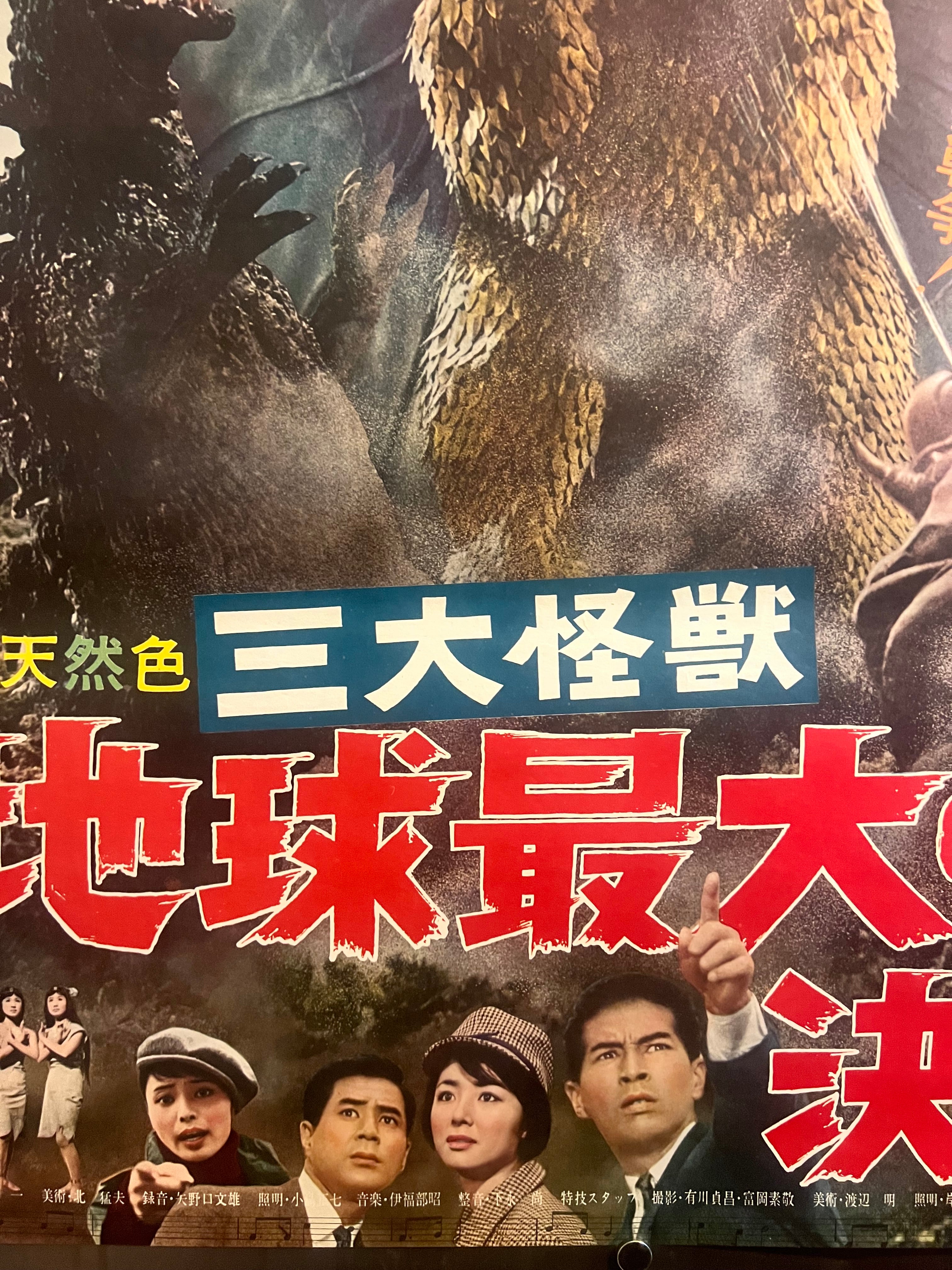 “Ghidorah, the Three-Headed Monster” (三大怪獣 地球最大の決戦), Original Japanese First-Release Movie Poster 1964 — Rare, B2 Size (51 × 73 cm) (G)