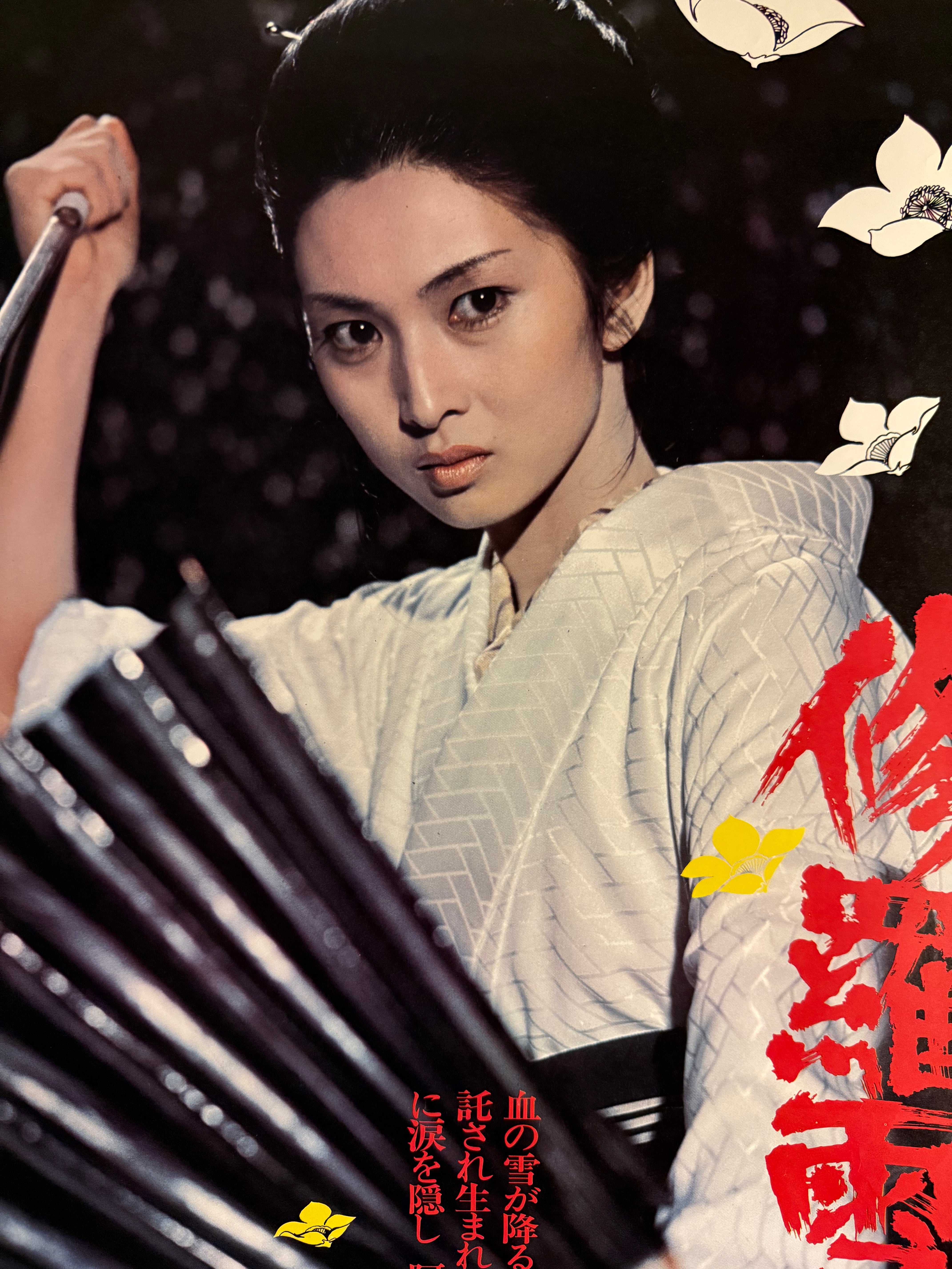 This is an original Japanese poster printed in 1973 by Toho for the first release of Lady Snowblood (修羅雪姫), the iconic jidaigeki revenge film directed by Toshiya Fujita (藤田敏八) and based on the manga by Kazuo Koike & Kazuo Kamimura (小池一夫・上村一夫). The film stars Meiko Kaji (梶芽衣子) with Toshio Kurosawa (黒沢年男), Masaaki Daimon (大門正明), and Eiji Okada (岡田英次). A cult touchstone, Lady Snowblood helped define modern screen vengeance—its snow‑garden duel, operatic violence, and icy poise profoundly influenced Quentin Tarantino’s Kill Bill (visual homage and narrative structure). Kaji’s recordings—“Shura no Hana / The Flower of Carnage” (the Lady Snowblood theme) and “Urami Bushi” (from Female Convict Scorpion)—were used on the Kill Bill soundtracks, cementing her status as an international cult icon whose voice and presence resonate far beyond Japan.