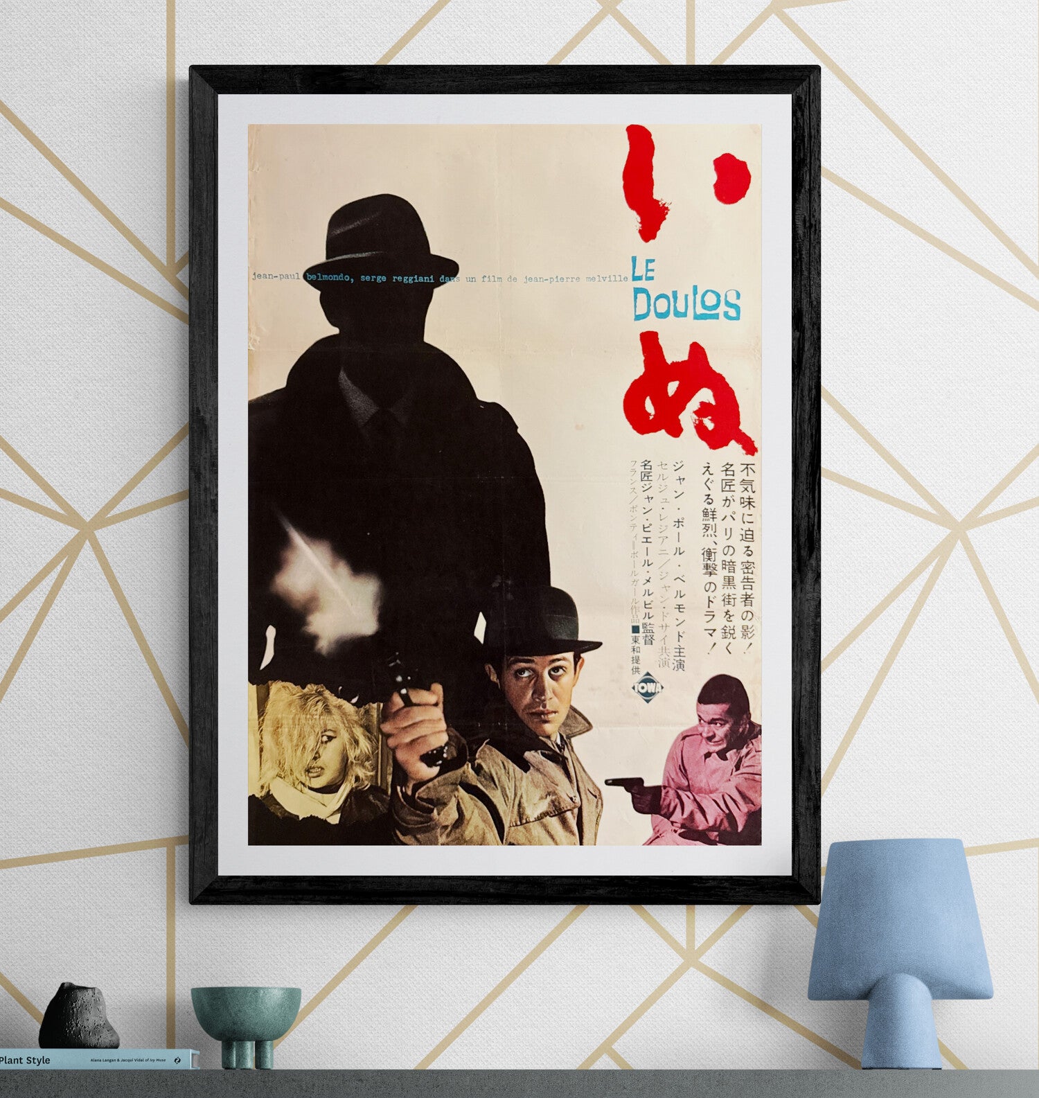 This is an original Japanese B2 poster issued in Japan for Jean‑Pierre Melville’s Le Doulos (1962), one of the director’s defining underworld noirs—cool, fatalistic, and meticulously staged—starring Jean‑Paul Belmondo and Serge Reggiani. In Japan, the film was memorably titled いぬ (“Dog”), a pointed choice: in Japanese criminal/police slang, inu can suggest an informer or stool pigeon, perfectly matching the film’s atmosphere of betrayal and shifting loyalties.