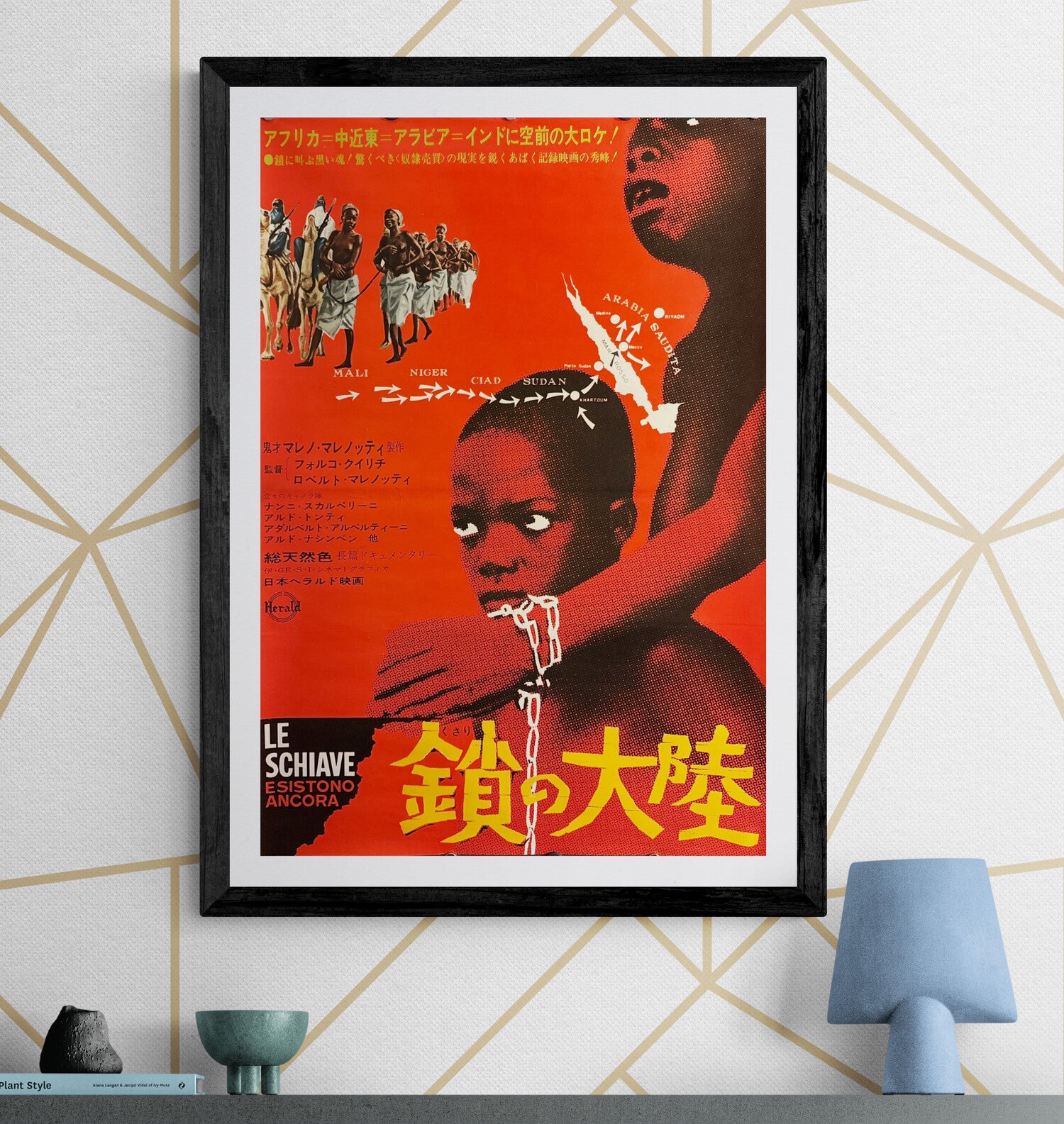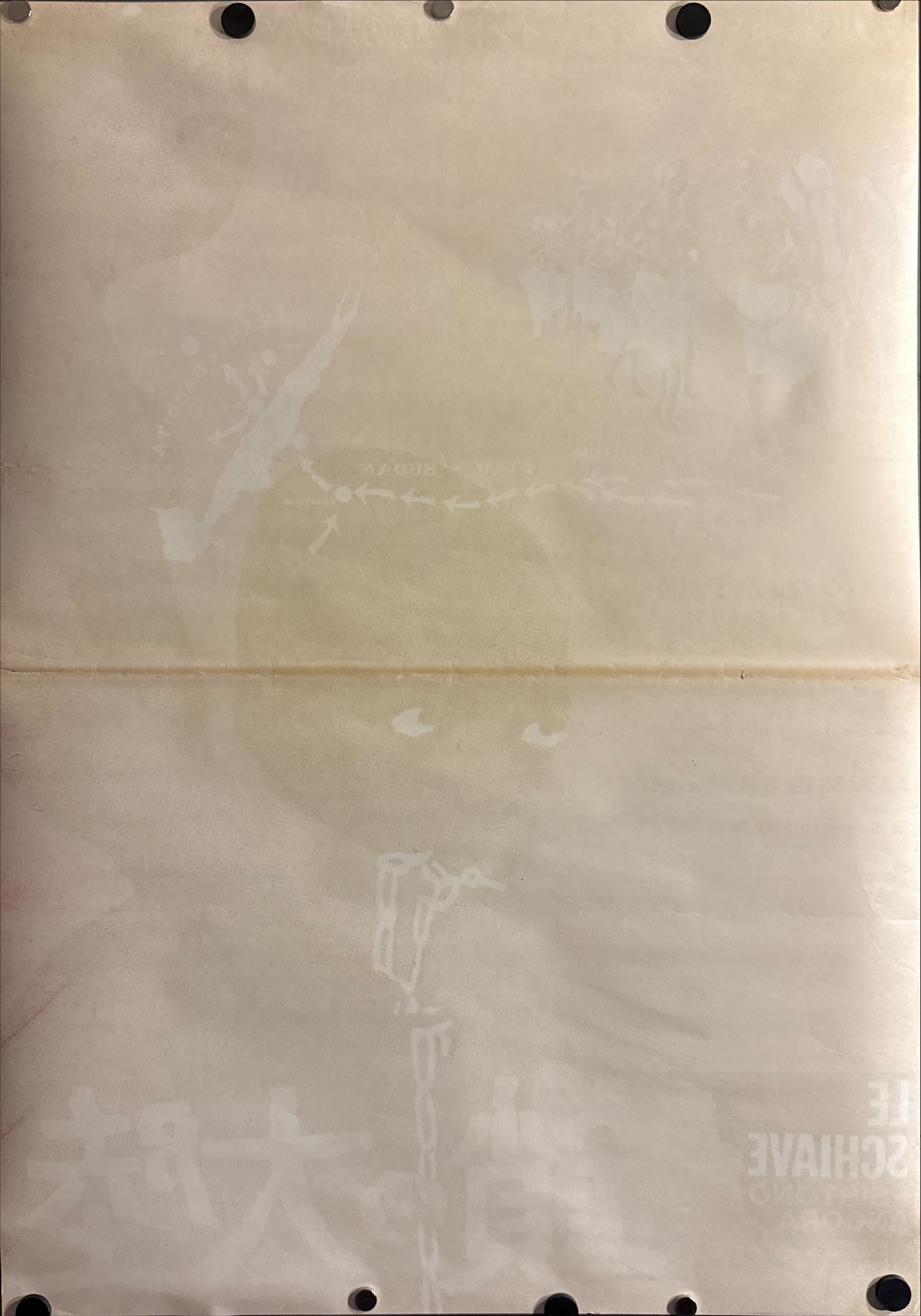This is an original Japanese B2 poster printed in 1964 for Le schiave esistono ancora (literal: “Slaves Still Exist”) — an Italian investigative documentary on the modern slave trade, directed by Folco Quilici and Roberto Malenotti. Released in Japan by Nippon Herald, the film traces trafficking routes across Africa and the Middle East, confronting audiences with first-hand reportage of caravans, markets, and forced migration.