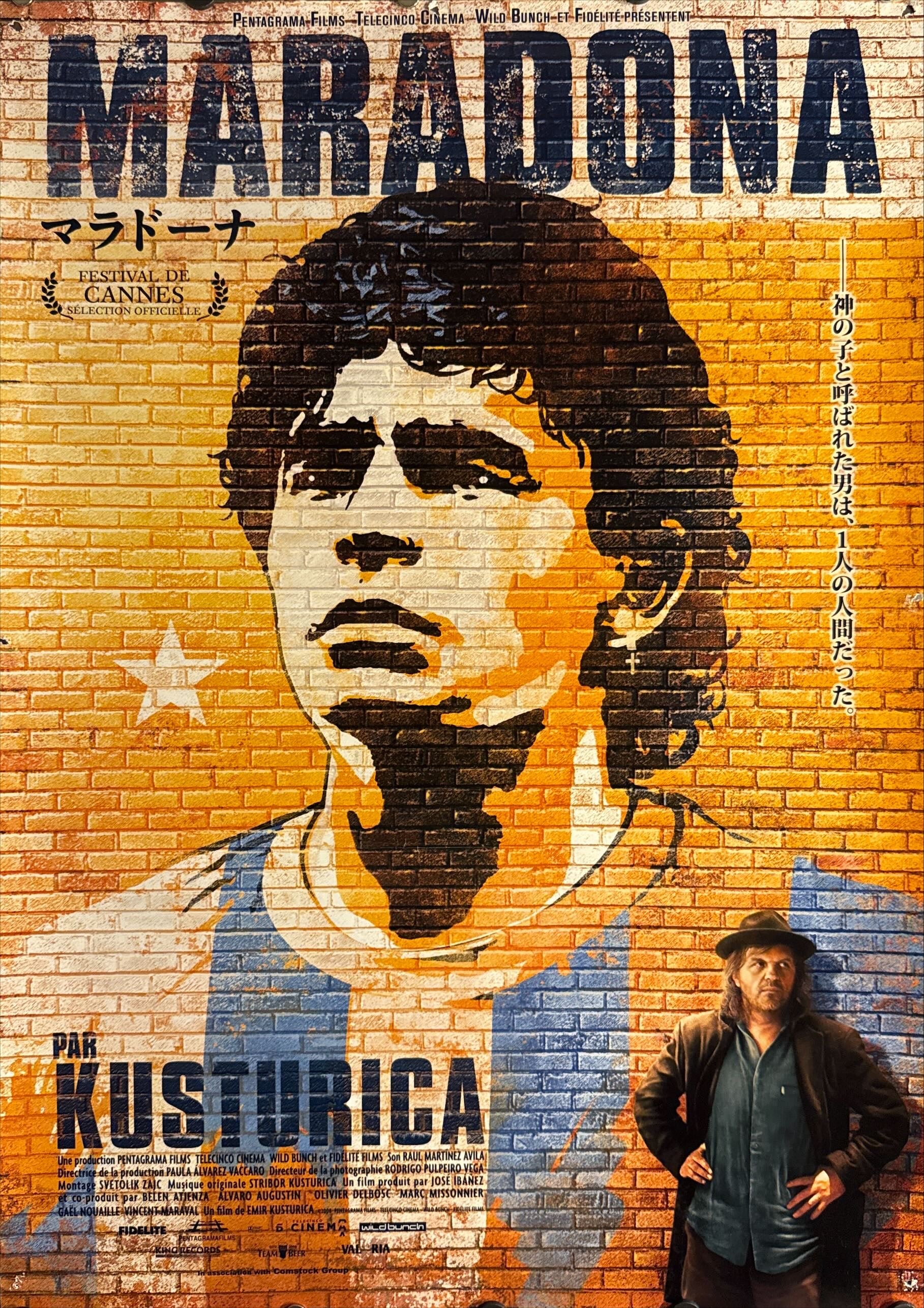 This is an original Japanese B2 poster printed in 2009 for the first Japanese theatrical release of Maradona by Kusturica, Emir Kusturica’s free‑form documentary portrait of Argentine football legend Diego Maradona. The film premiered at Cannes in 2008 and was later released in Japan under the shortened Japanese title マラドーナ.