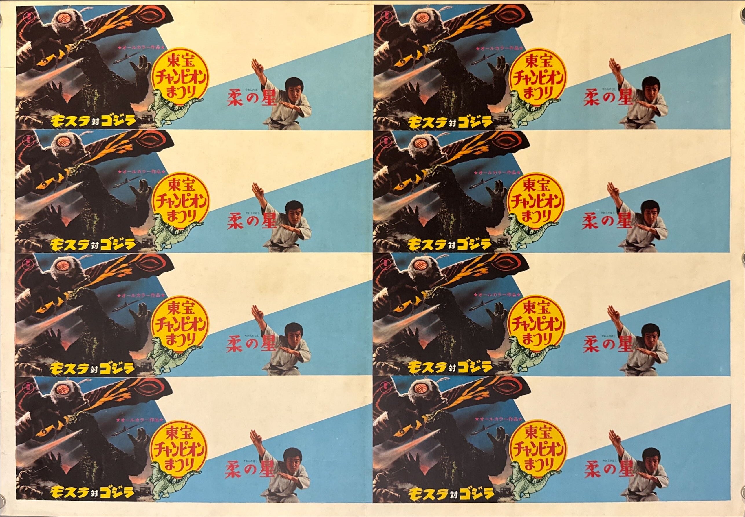 Mothra vs. Godzilla (モスラ対ゴジラ) / Yawara no Hoshi (柔の星) Ultra-rare uncut printer’s proof / press sheet (未裁断宣材), Japan, Toho Champion Festival, 1970, Size 44.5 × 63 cm O597