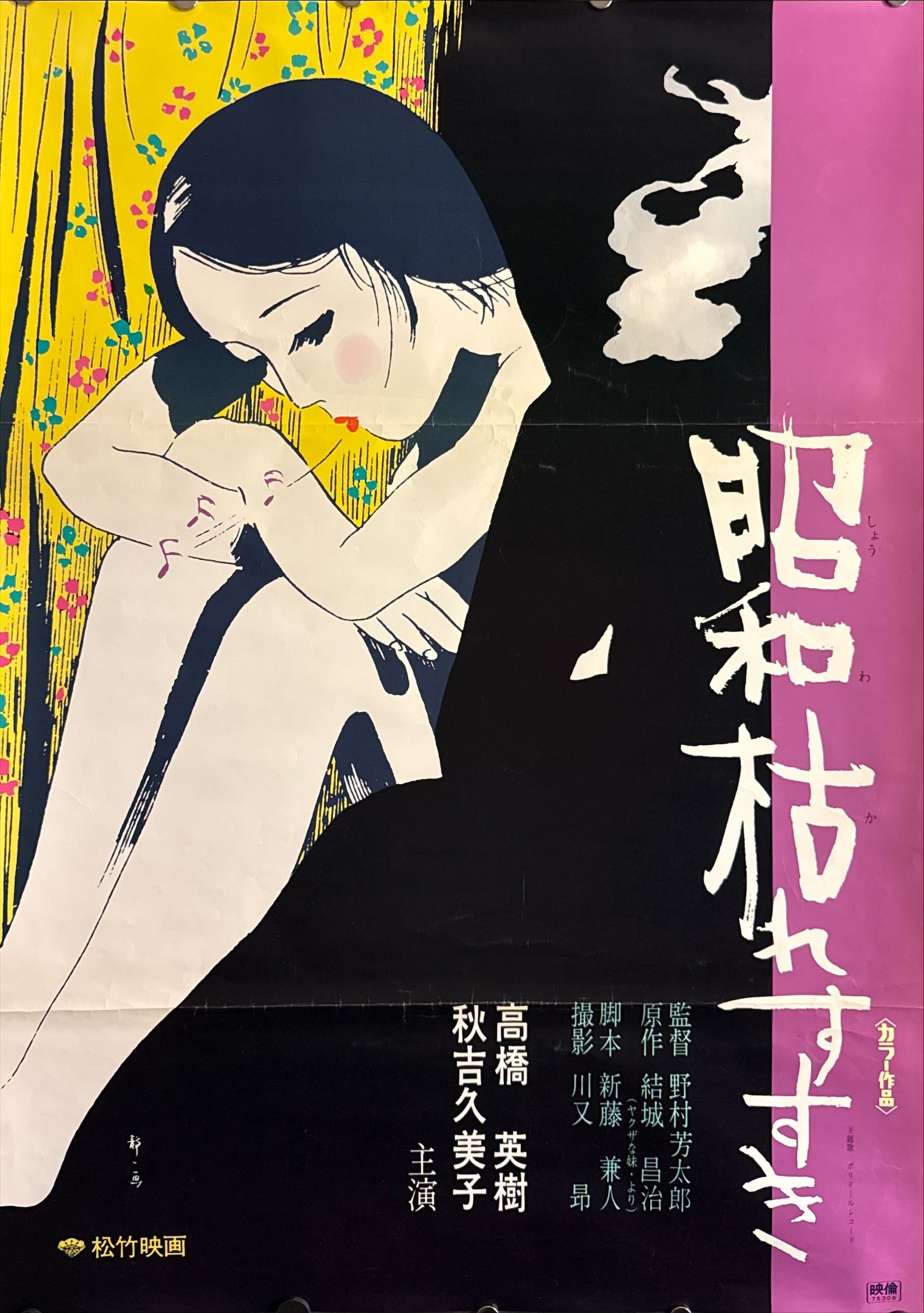 This is an original Japanese B2 poster printed in 1975 for the first theatrical release of The Perennial Weed (昭和枯れすすき), directed by Yoshitaro Nomura and distributed by Shochiku.