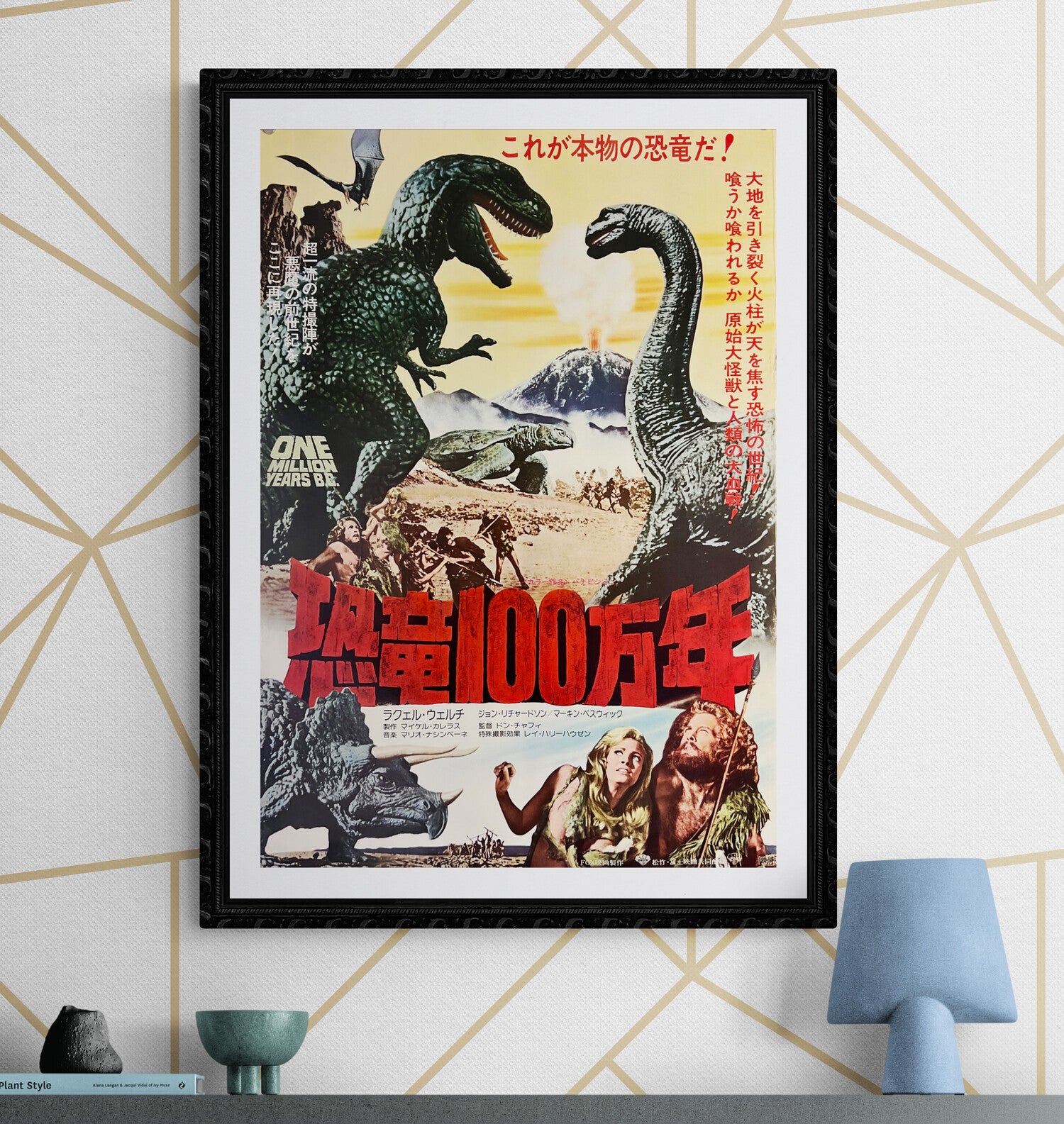 This is an original Japanese poster printed in 1977 for the re-release of One Million Years B.C.