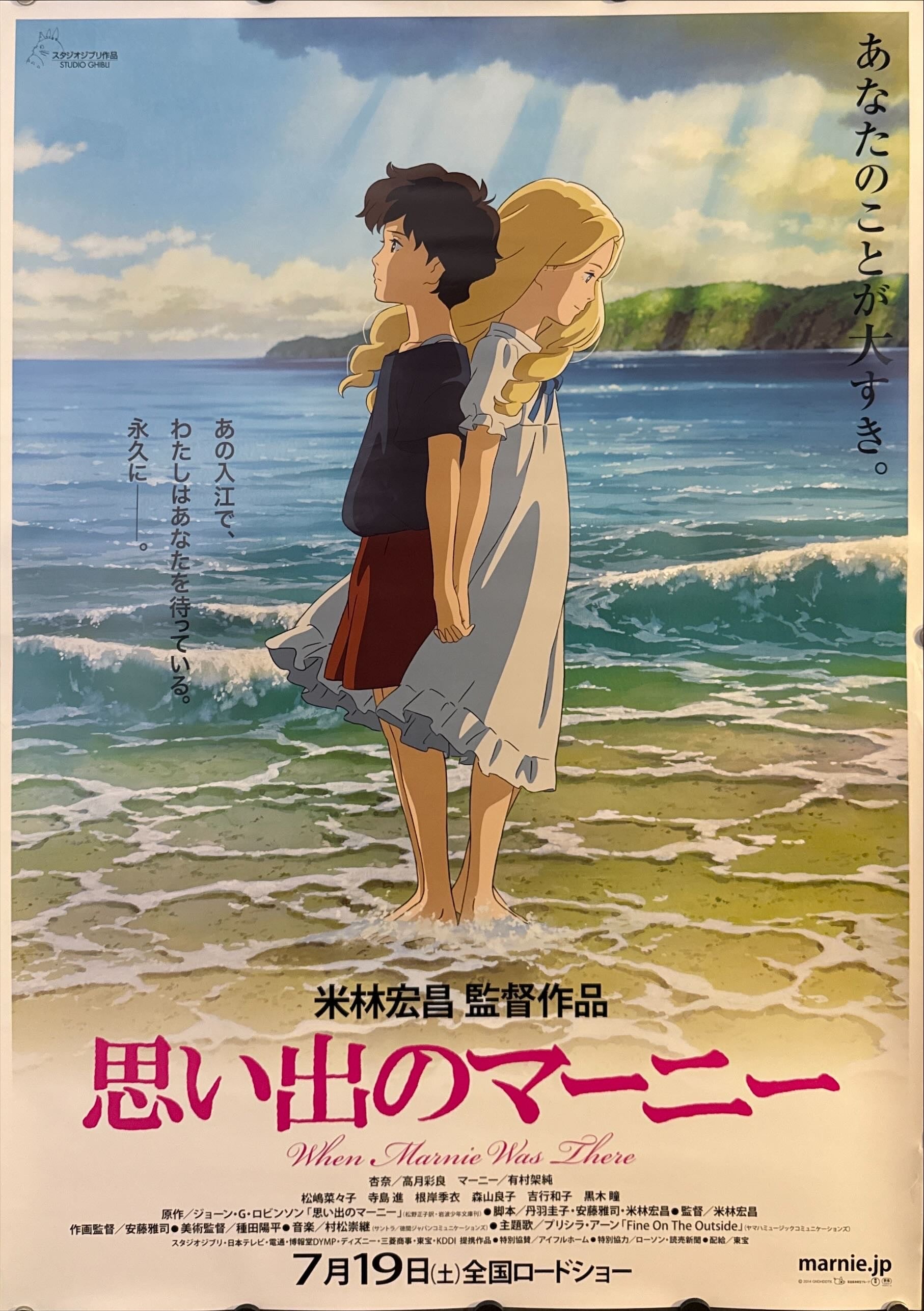 This is an original Japanese B2 theatrical poster printed for the 2014 release of When Marnie Was There, the Studio Ghibli feature directed by Hiromasa Yonebayashi and based on the novel by Joan G. Robinson. The film was one of the studio’s final works before its temporary hiatus and is beloved for its gentle, emotionally rich storytelling.