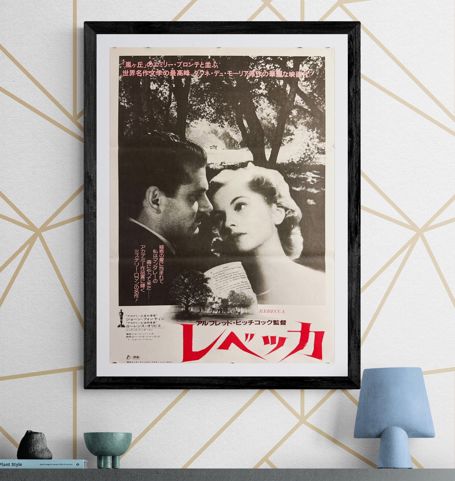 This is an original Japanese B2 poster printed in 1982 for a theatrical re-release of Alfred Hitchcock’s Rebecca (レベッカ)—the Academy Award-winning gothic romance / mystery adapted from Daphne du Maurier’s celebrated novel, starring Laurence Olivier and Joan Fontaine (with Judith Anderson as the unforgettable Mrs Danvers).