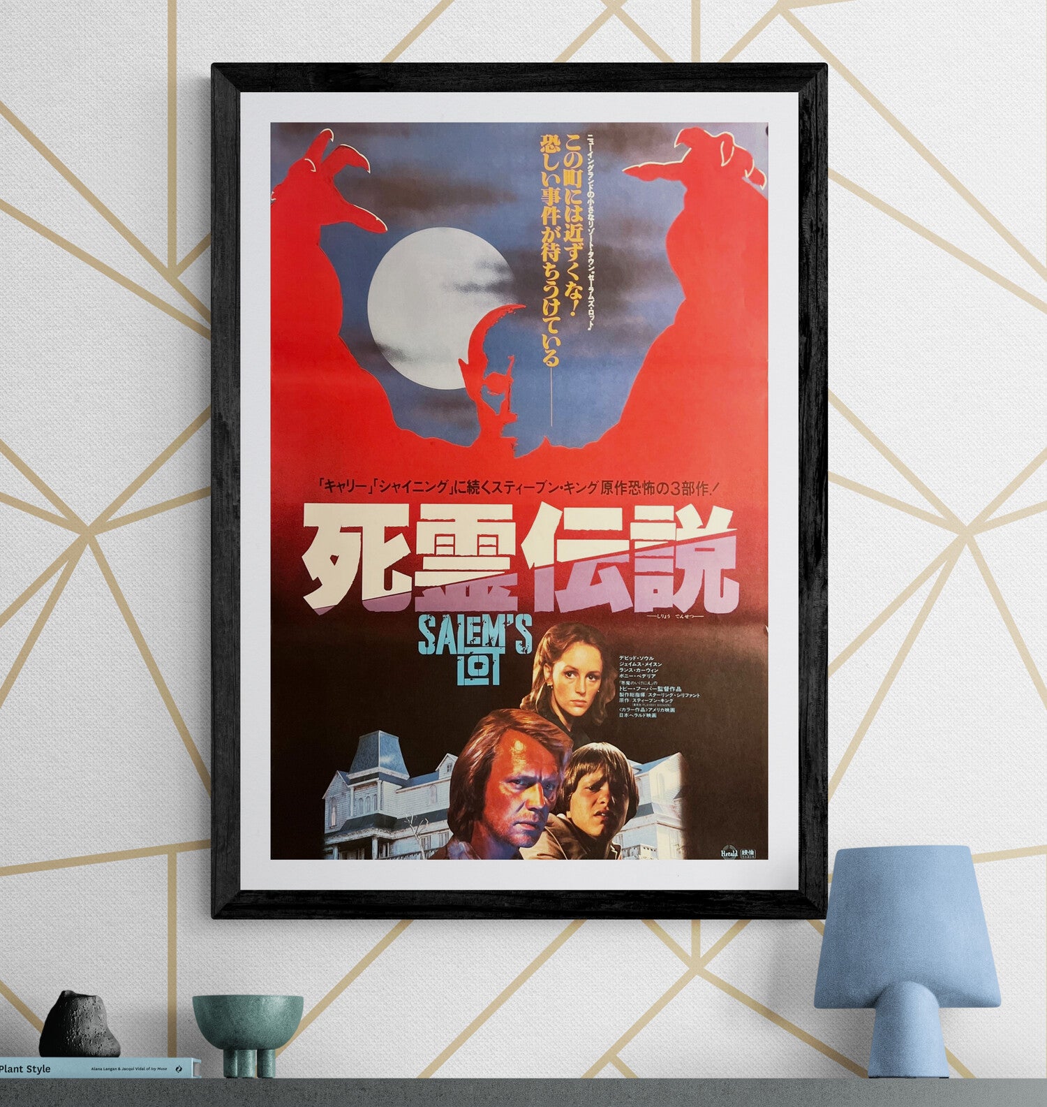 This is an original Japanese B2 poster printed in 1982 for the Japanese release of Salem’s Lot (死霊伝説), the Stephen King vampire adaptation directed by Tobe Hooper and starring David Soul and James Mason.