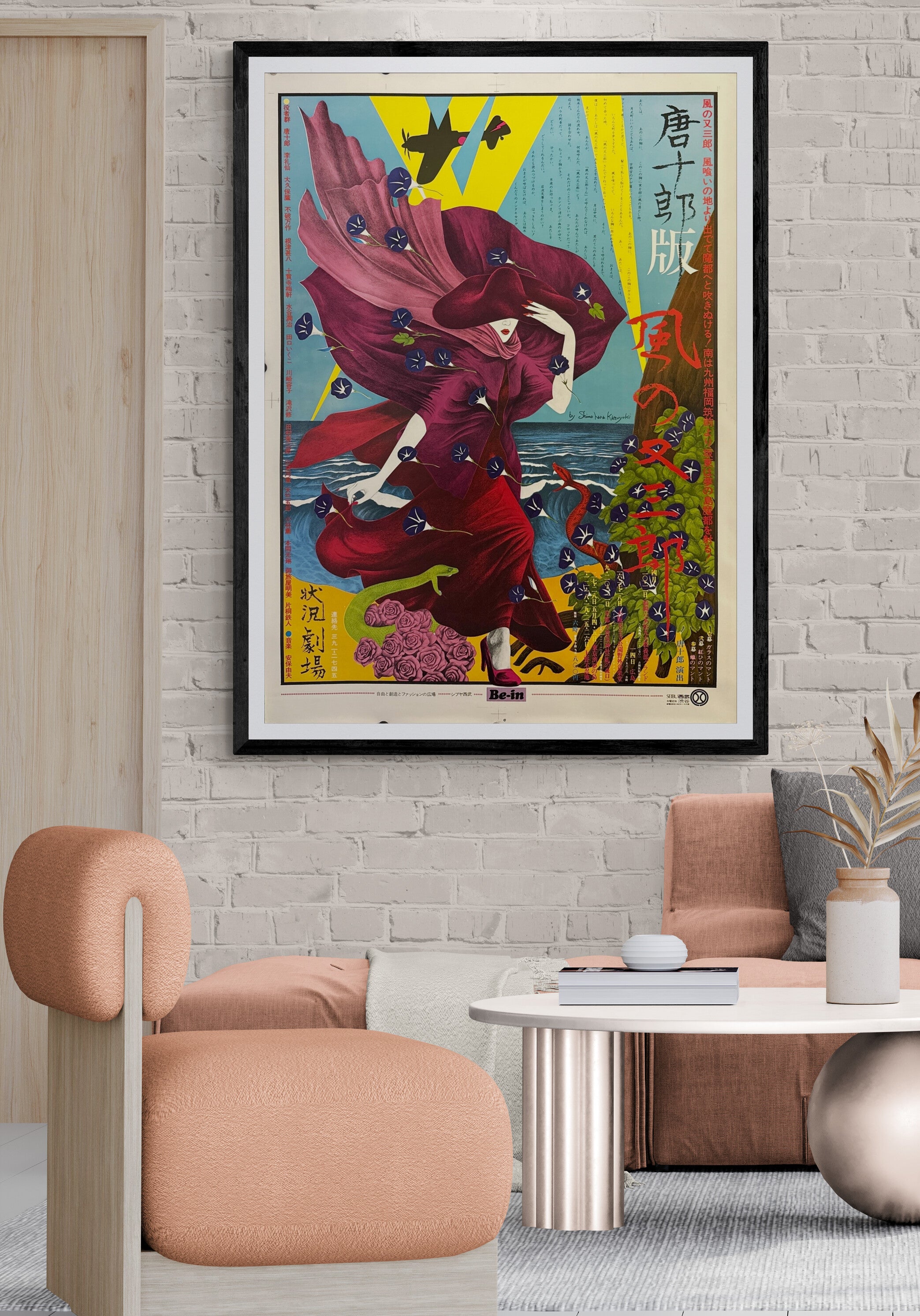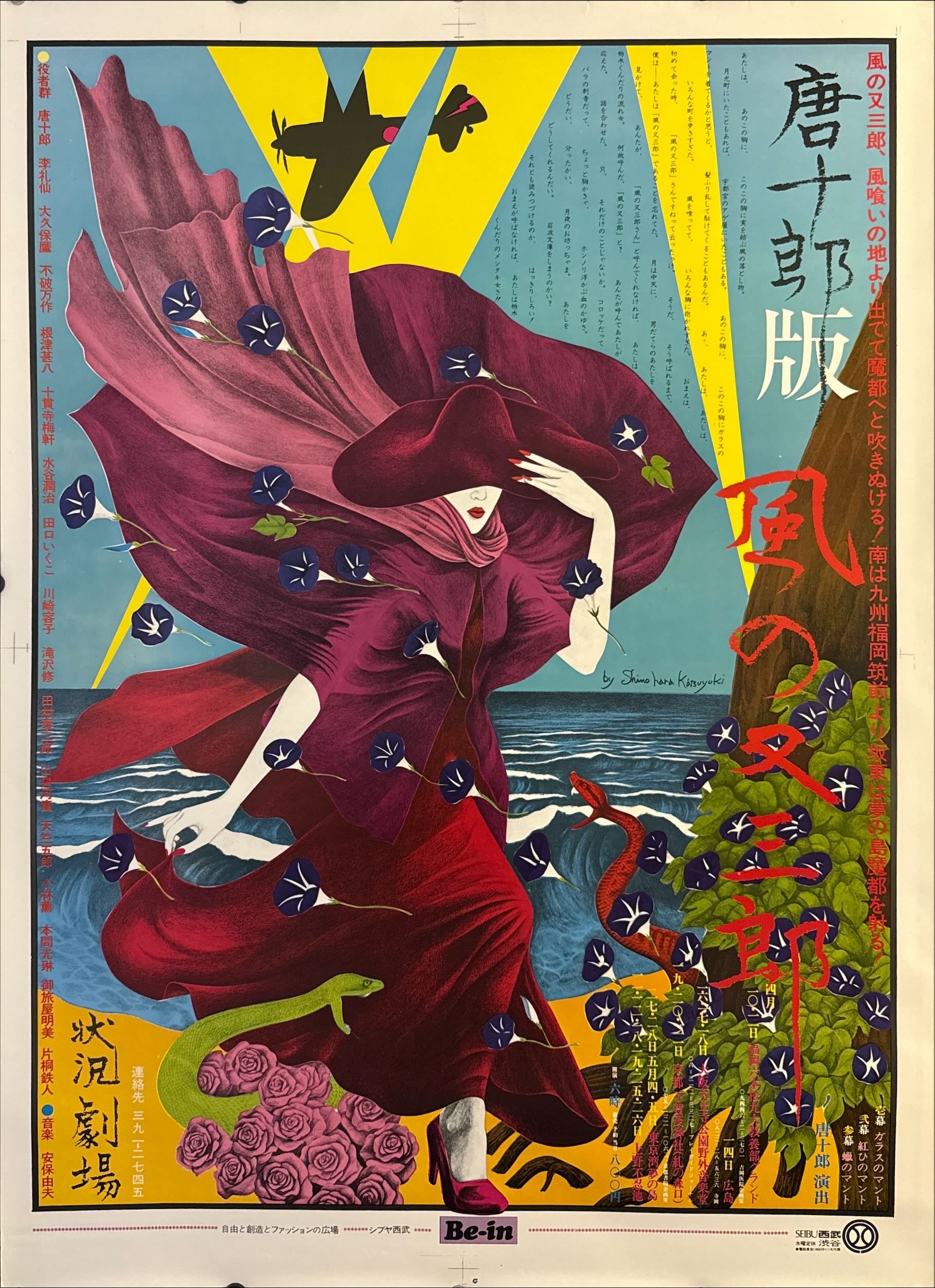 Katsuyuki Shinohara (篠原勝之 / Katsuyuki Shinohara) - Jōkyō Gekijō (Situation Theatre) — Kara‑ban Kaze no Matasaburō 「唐十郎版 風の又三郎」 (“Matasaburō of the Wind”), Japanese Contemporary Art Poster, Original Offset Screen 1974, Ultra Rare, Size (c.78 x 108cm)