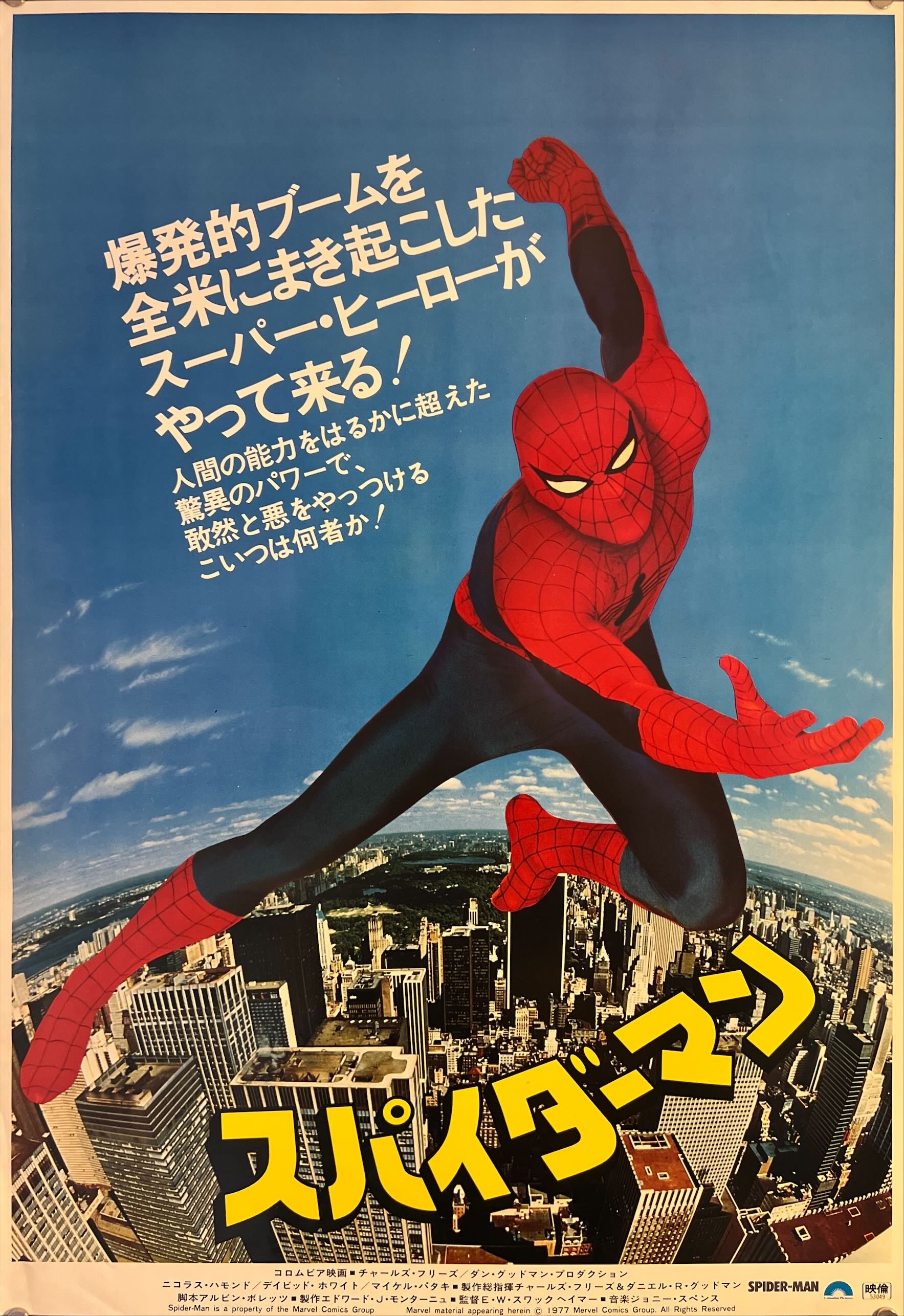 This is an original Japanese poster printed in 1977 for the first release of Spider-Man.