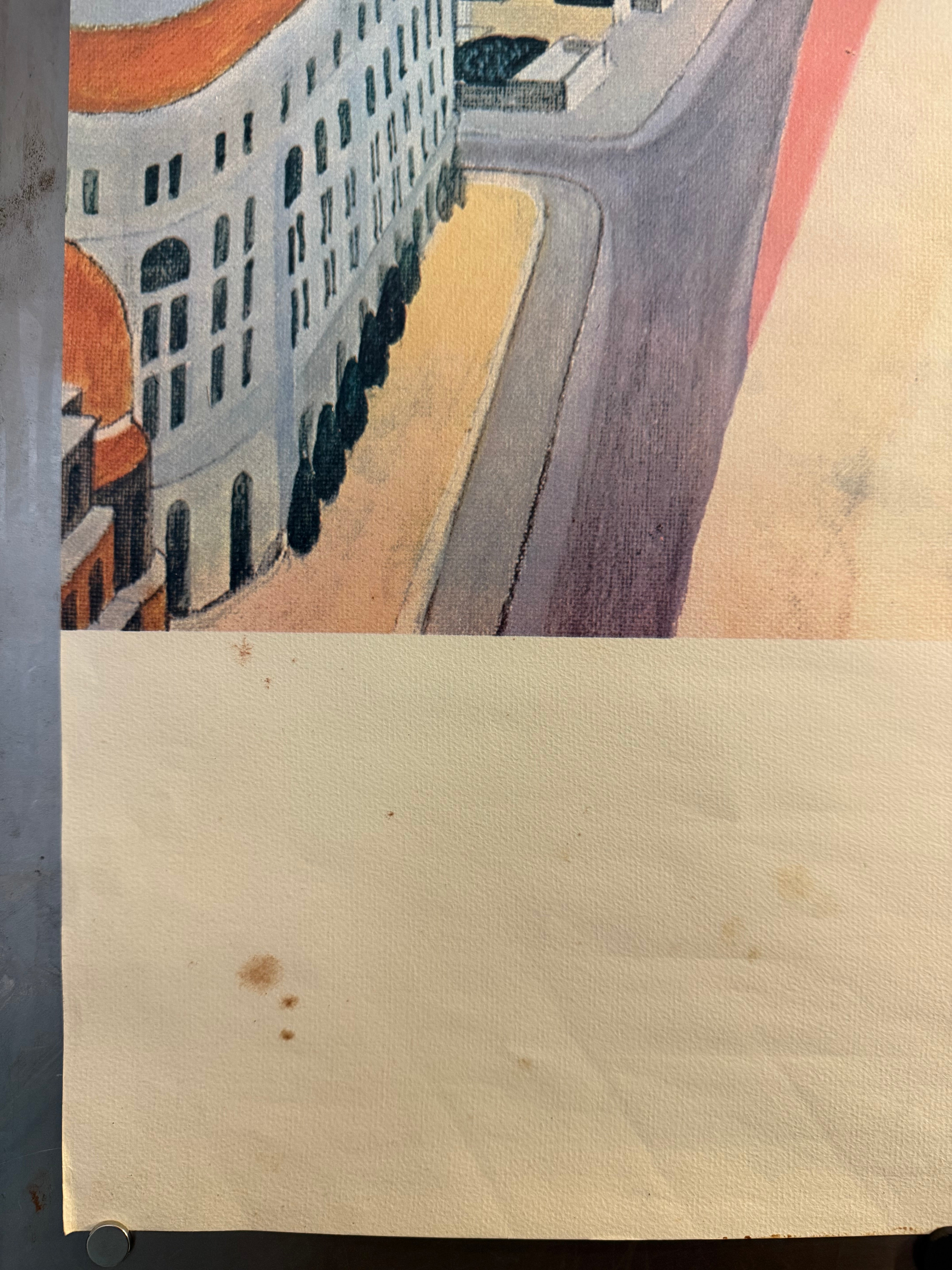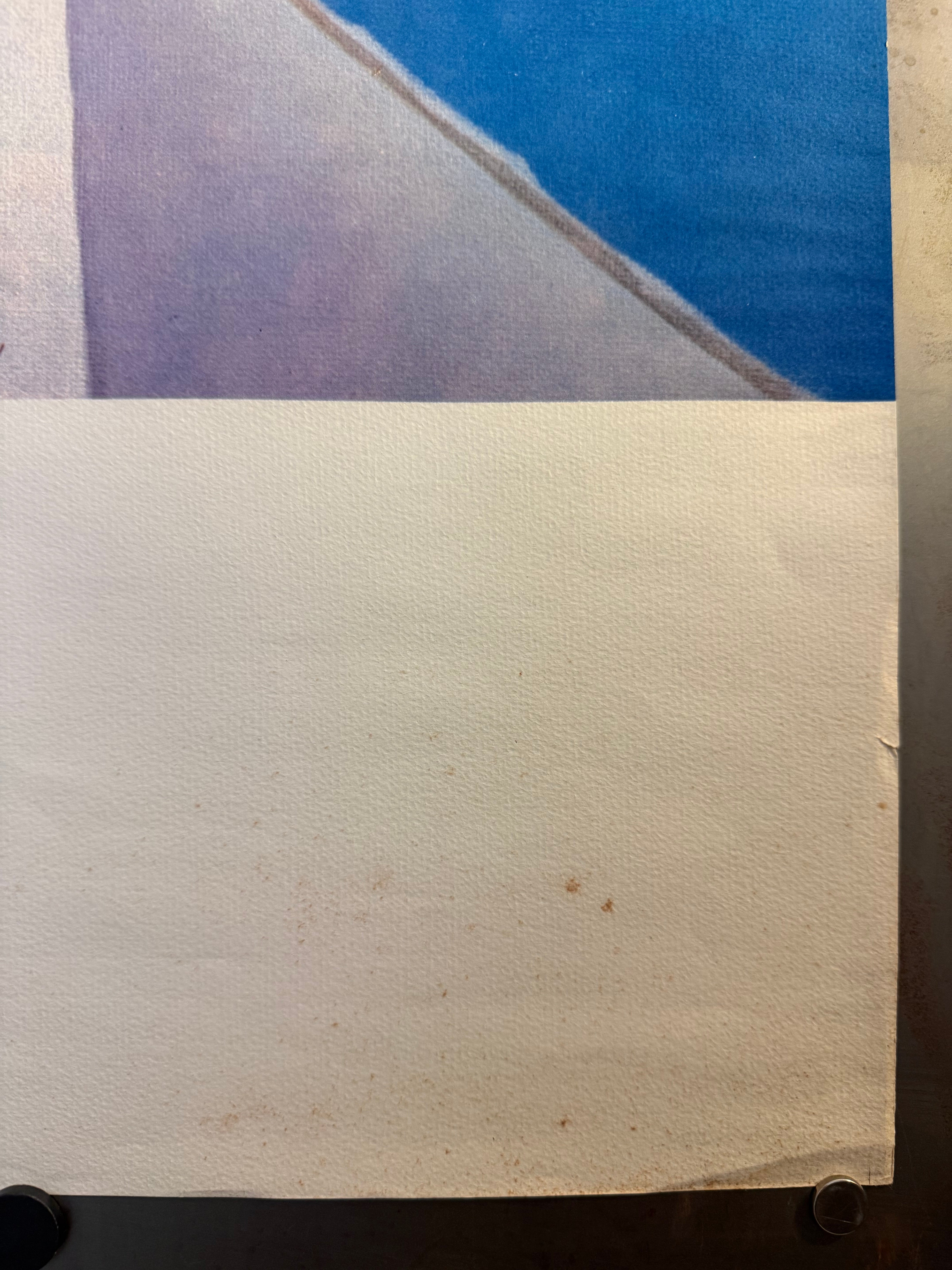 Condition: Excellent overall. Paper is strong with vivid inks. There is minor brown spotting/foxing in the white lower margin and a few tiny specks in the blue field (see additional photos). We have taken this into account in the pricing. Once framed, the poster will display beautifully.