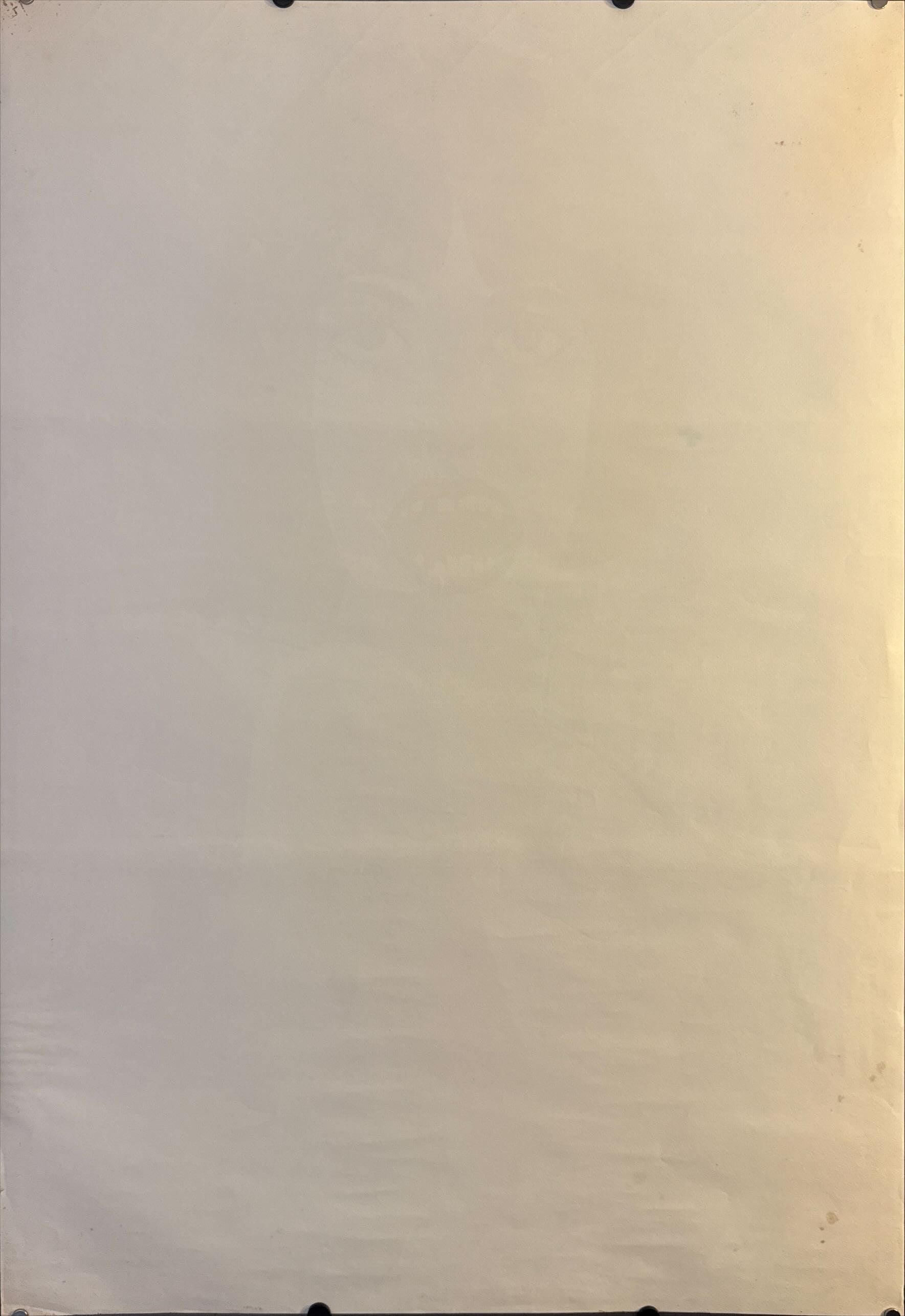 Issued in the very large and scarcer B1 format (71 × 103 cm), this striking piece showcases Tadanori Yokoo’s singular blend of pop, surrealism, and mysticism. A towering figure in Japanese graphic design of the 1960s–70s, Yokoo is often compared with international greats such as Milton Glaser and Seymour Chwast, yet his work remains unmistakably personal. Trained in theatre design, influenced by Akira Kurosawa and Yukio Mishima, and energized by late‑’60s psychedelia and travels in India, Yokoo built a visual language that earned him international acclaim—appearing in MoMA’s 1968 “Word & Image” exhibition and later receiving a MoMA solo show. He eventually shifted his focus to painting in 1981, while continuing to shape both fine art and graphic design.