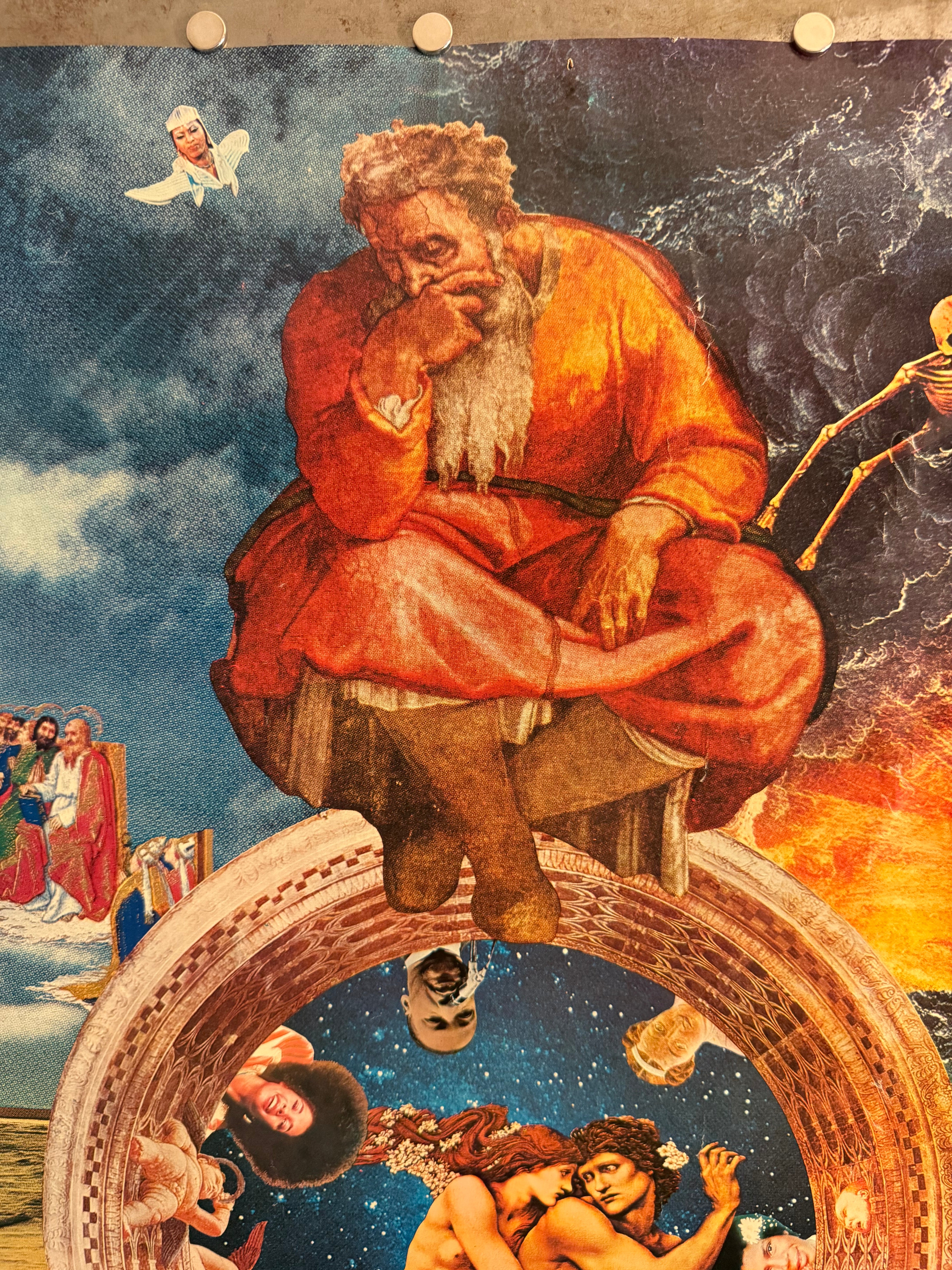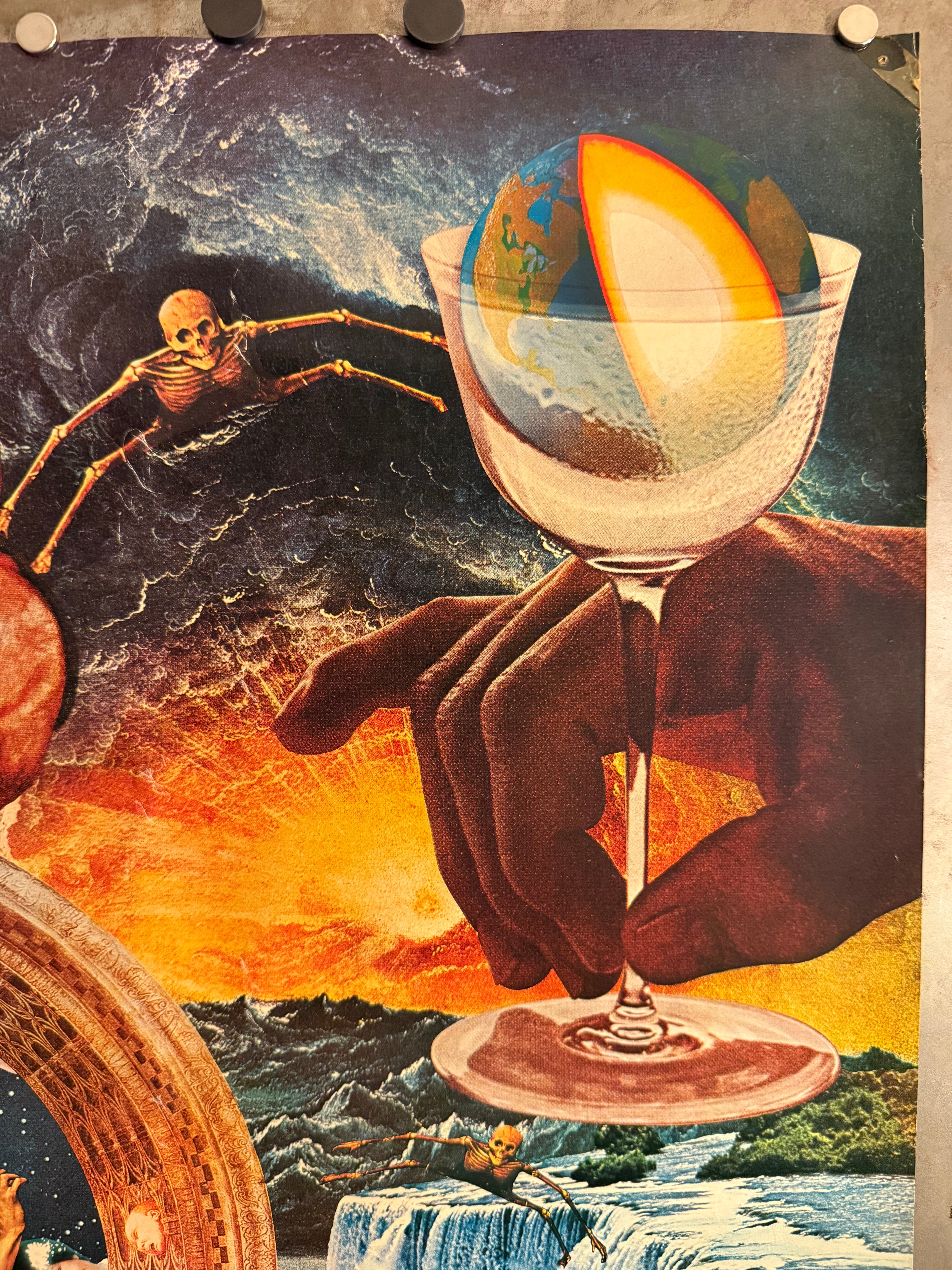 Known for his vibrant and dynamic collage style, Yokoo’s work here channels the spiritual, cosmic energy of Earth, Wind & Fire at their mid‑’70s peak. Sacred and art‑historical imagery swirls together with the band members in gleaming white suits, flames arcing around them in a psychedelic mandala of rebirth and transcendence. It’s a visually dazzling piece that fuses pop culture, mysticism and fine art—an absolute must‑have for both music fans and serious poster collectors, representing the meeting of two creative powerhouses: Earth, Wind & Fire and Tadanori Yokoo.