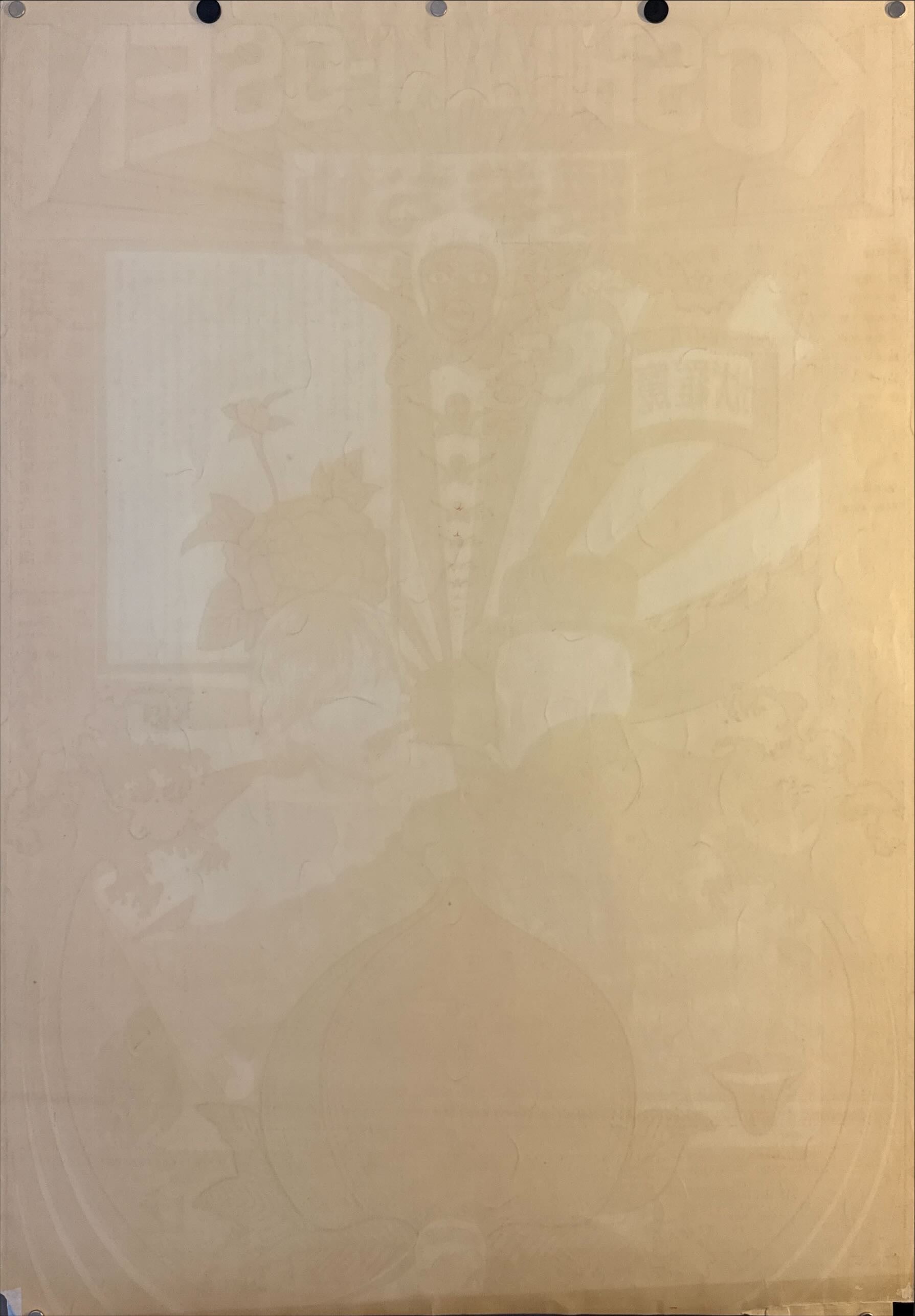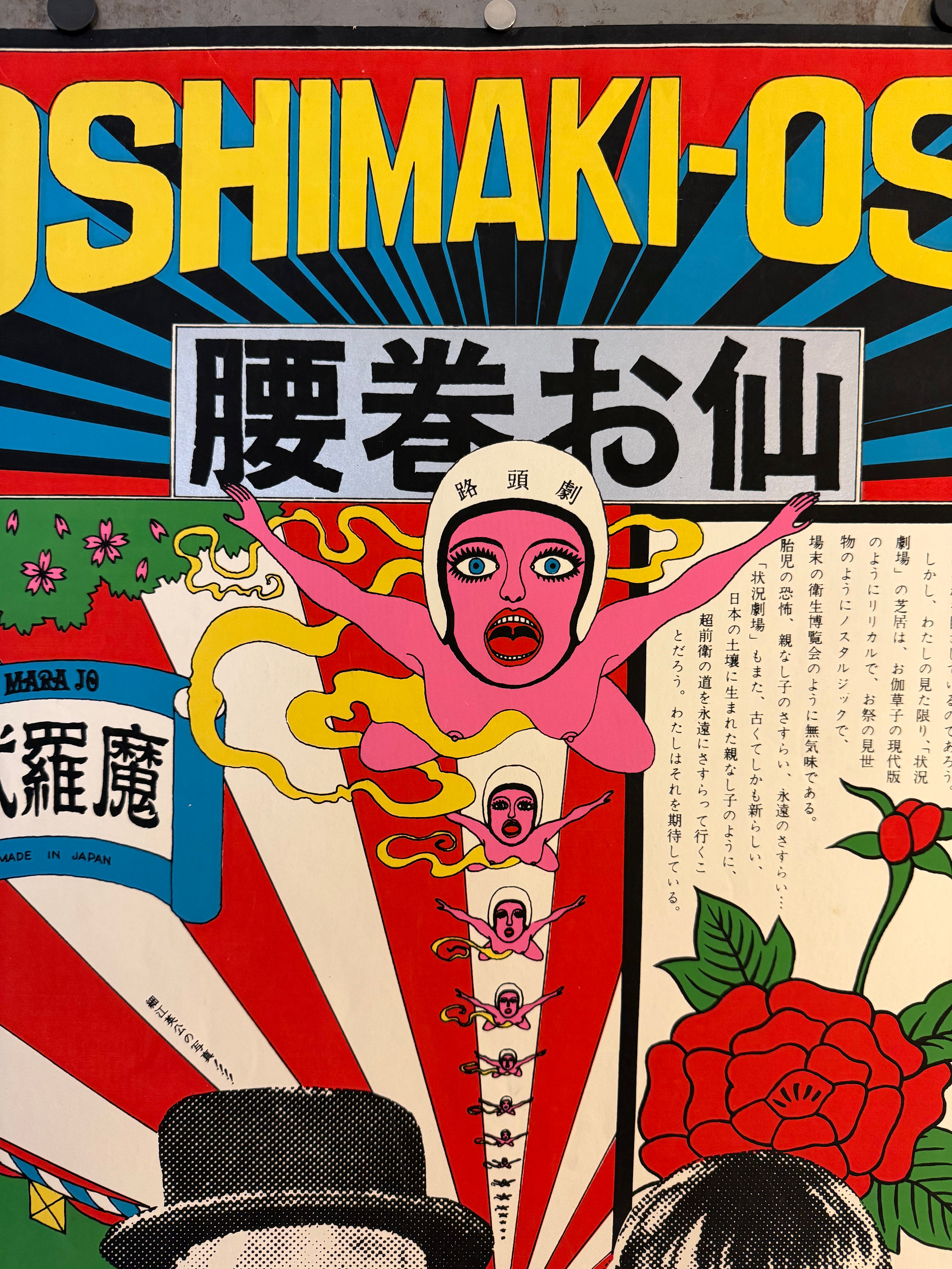 Japan Poster Shop has acquired a substantial and unique collection of original Tadanori Yokoo posters from one of the most prolific collectors in Japan. This individual has a very colorful life story, having invested and dedicated many decades to his love for Tadanori Yokoo`s vibrant designs. Works from this collection rarely come to market, and this impression of Koshimaki‑Osen is among the most coveted.