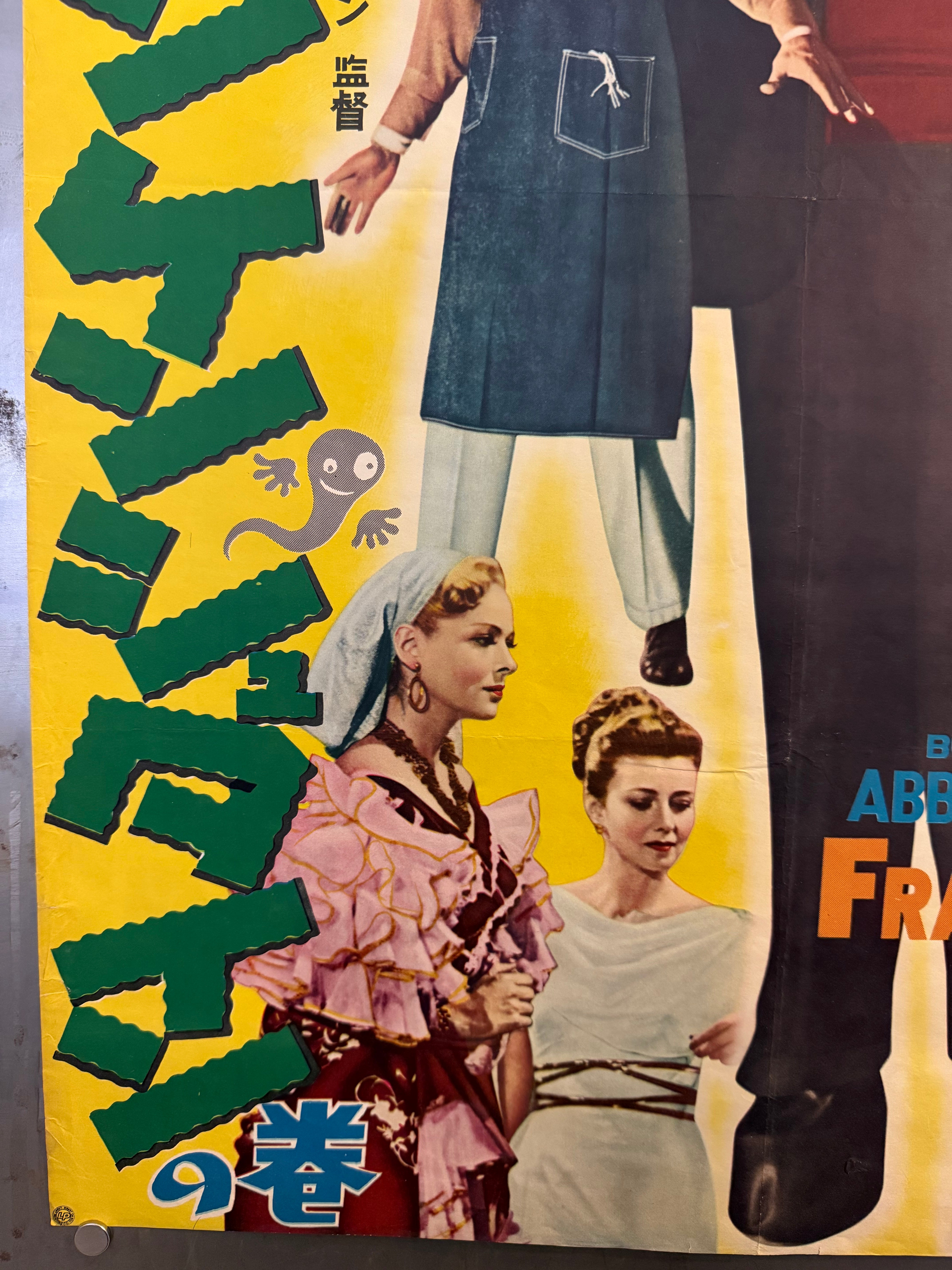 Japanese paper for Abbott and Costello Meet Frankenstein is notoriously elusive. Surviving material from the 1954 release tends to be the small monochrome “speed” or press sheets; even those are described in the trade as “ultra‑rare Japanese 1st release posters.” Full‑colour B2s like the present sheet appear only very occasionally in the market.
