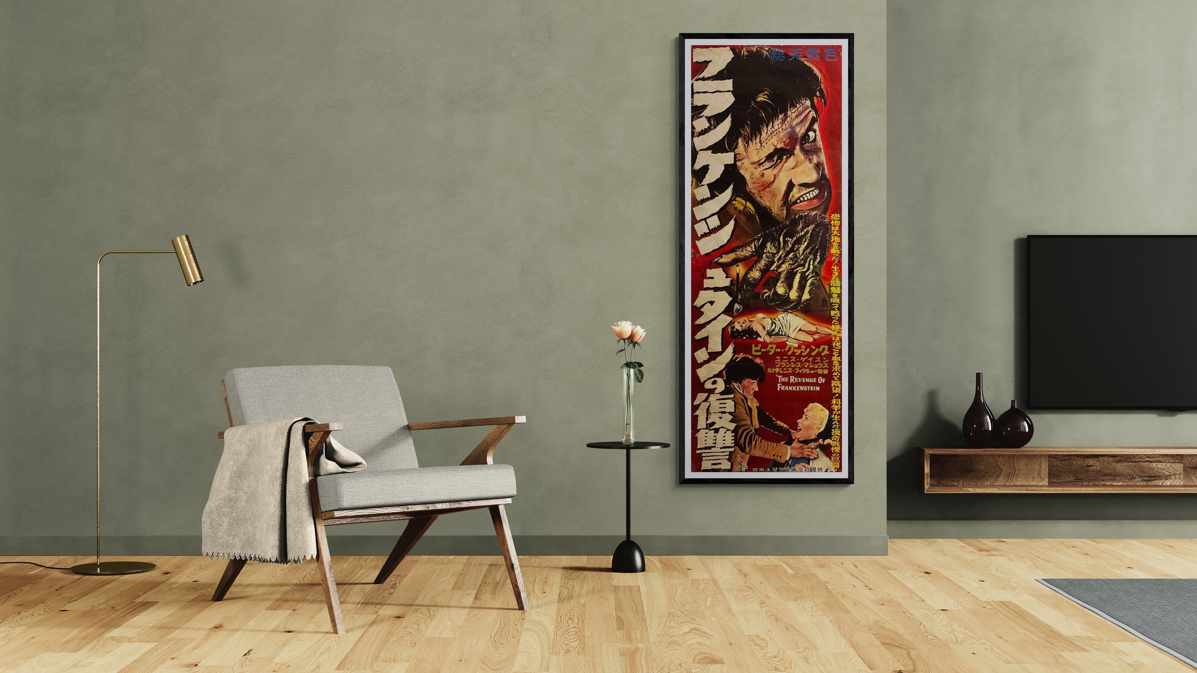 “THE REVENGE OF FRANKENSTEIN”, Original Release Japanese Movie Poster 1958, STB Tatekan (51 × 145 cm) — Ultra Rare