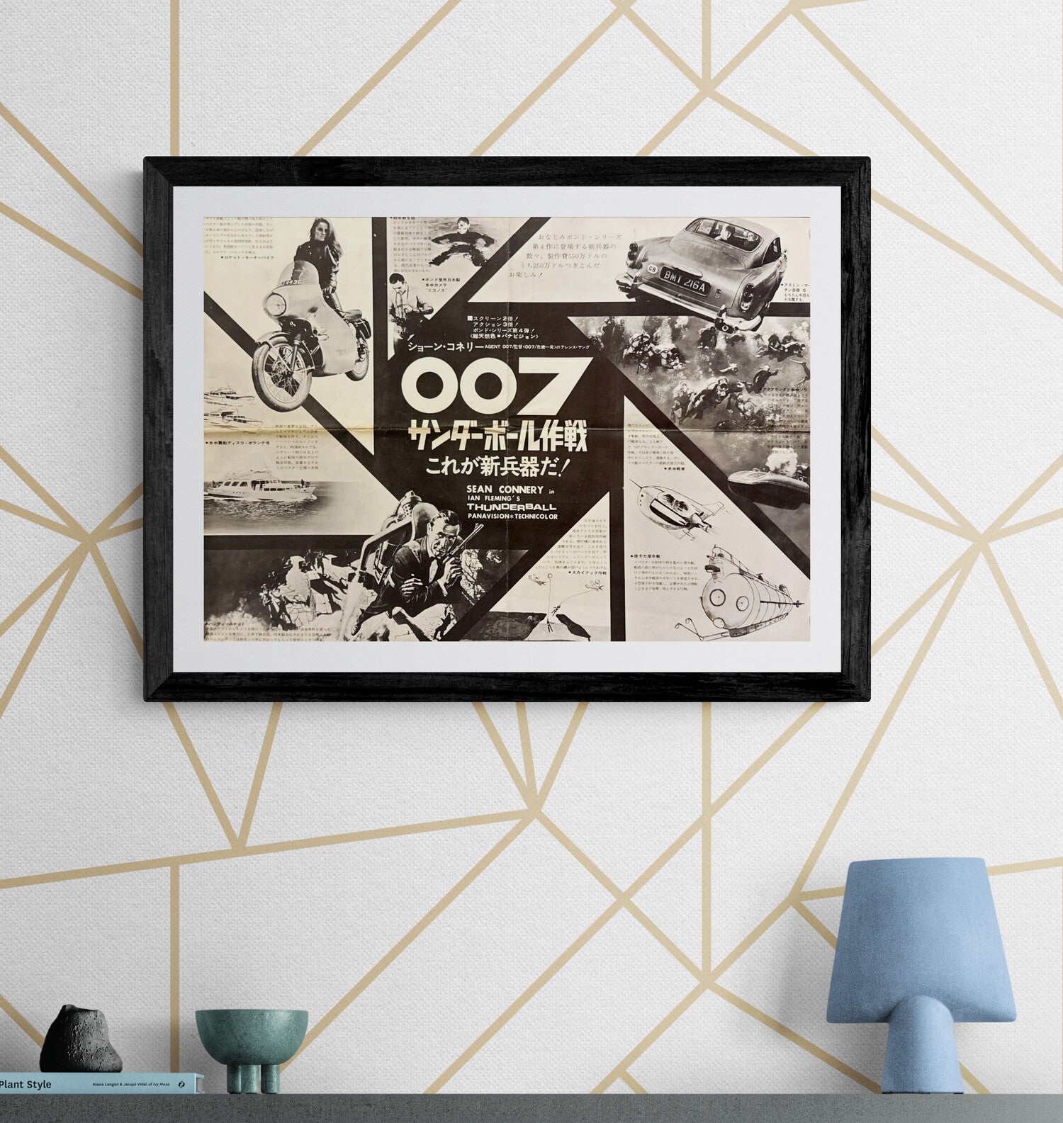 This is an original Japanese B3 poster printed in 1965 for Sean Connery’s fourth 007 outing Thunderball (Panavision / Technicolor). Issued for the first Japanese theatrical run, this scarce shop/poster features the headline “これが新兵器だ!”—spotlighting the film’s cutting-edge gadgets and underwater warfare.
