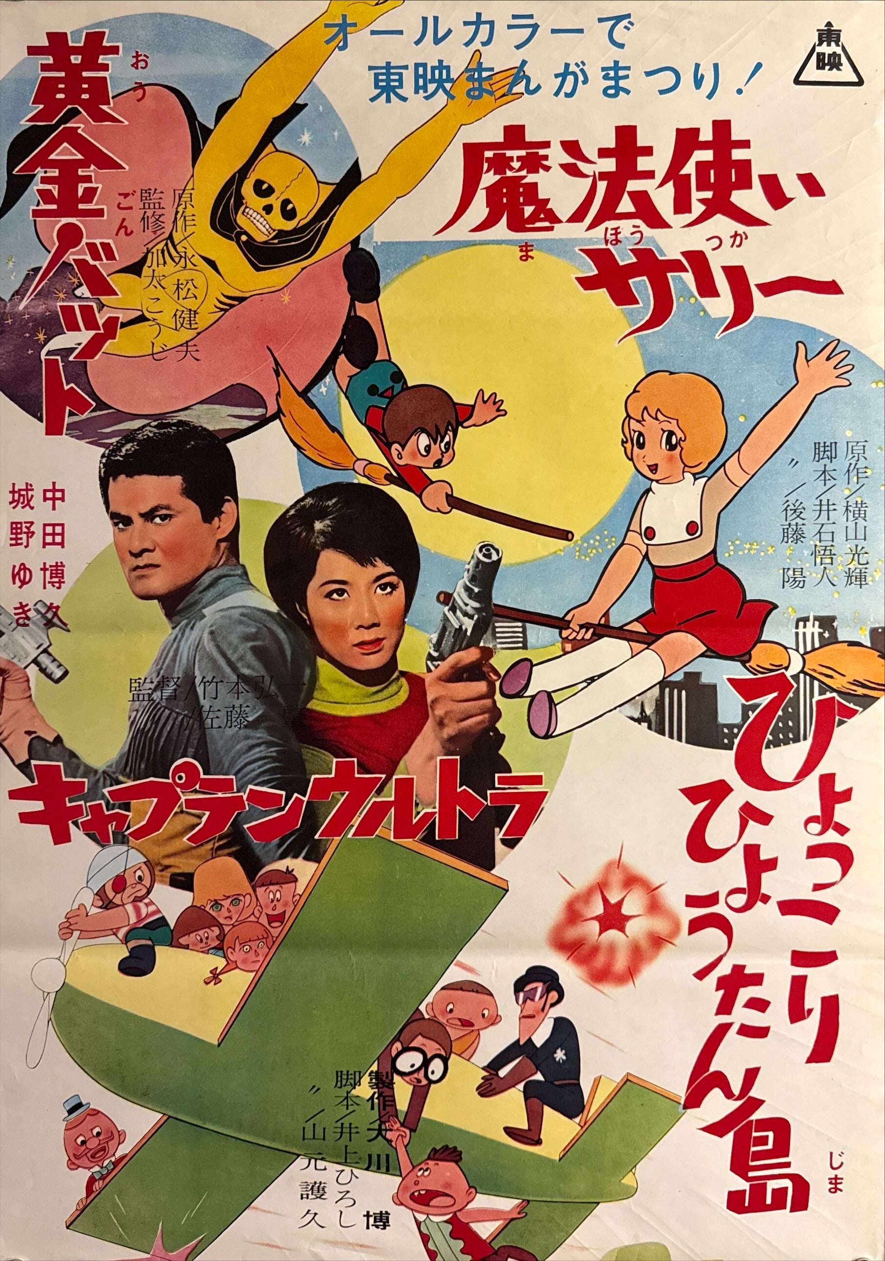 “TOEI Manga Festival — Sally the Witch / Golden Bat / Captain Ultra / Hyokkori Hyoutan‑jima” (東映まんがまつり「魔法使いサリー/黄金バット/キャプテンウルトラ/ひょっこりひょうたん島」), Original Release Japanese Movie Poster 1967, Rare, B2 Size (51 × 73 cm) O495