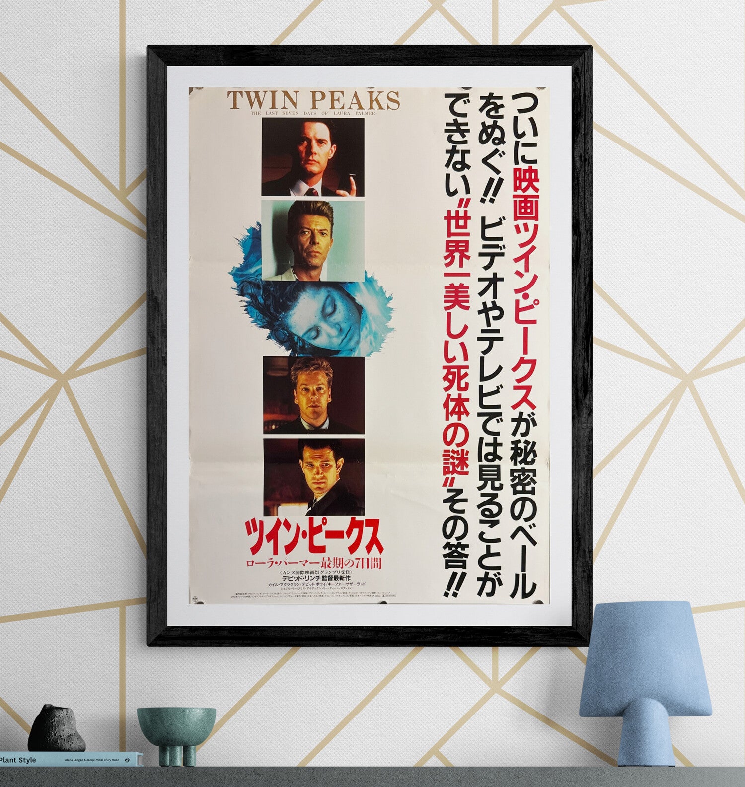 This is an original Japanese B2 poster printed in 1992 for the first Japanese release of Twin Peaks: Fire Walk with Me, David Lynch’s haunting prequel to Twin Peaks. The Japanese campaign is especially collectible, and this white-background variant is one of the most striking—and hardest-to-find—of the film’s Japanese poster designs.