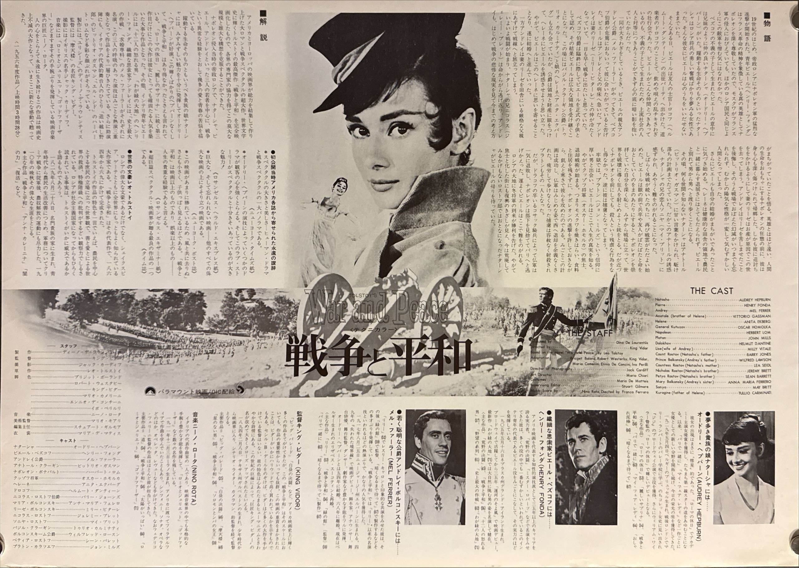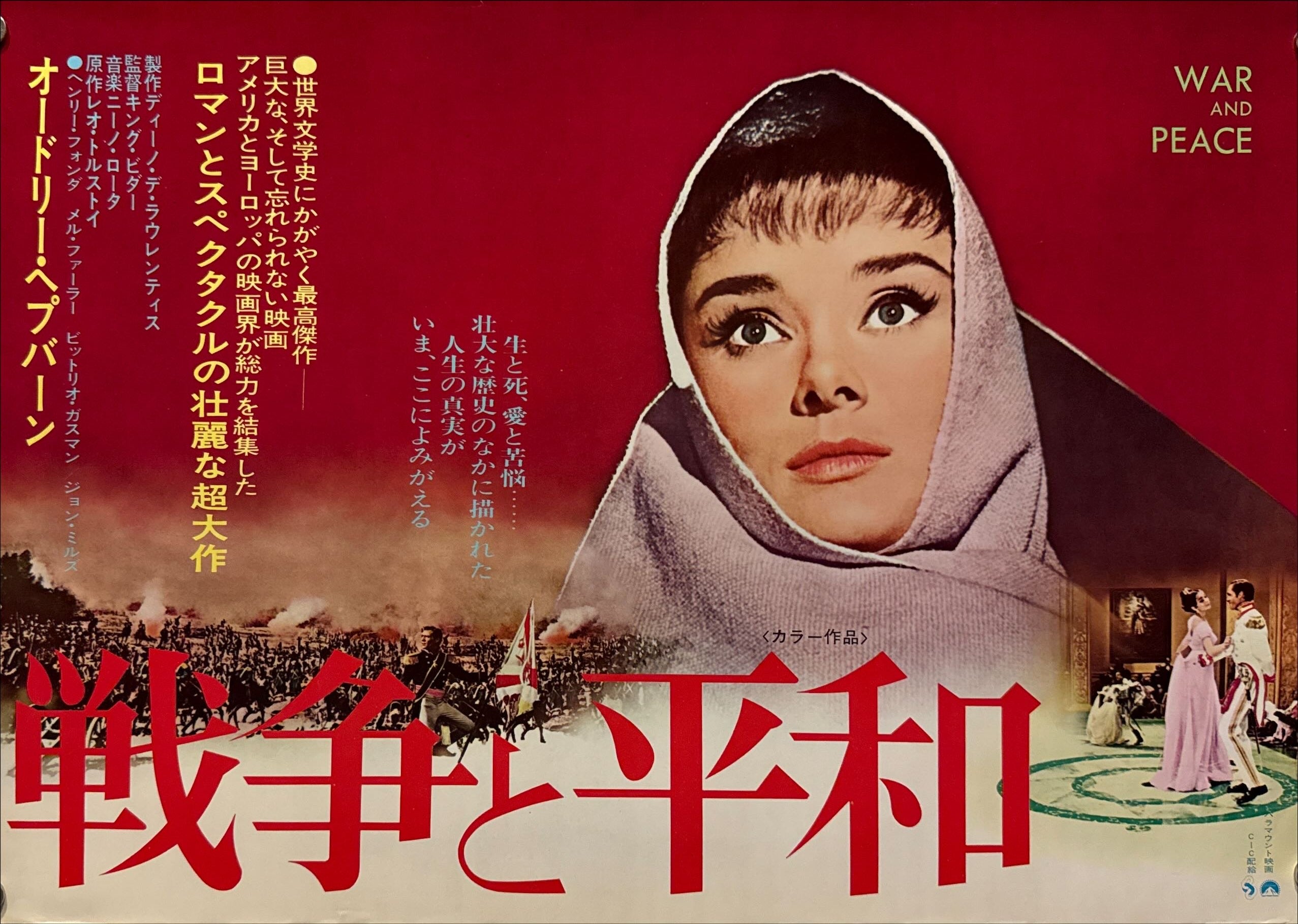 This is an original Japanese B3 poster printed in 1973 for the nationwide re-release of King Vidor’s epic adaptation of Leo Tolstoy’s War and Peace (1956), starring Audrey Hepburn, Henry Fonda, and Mel Ferrer. The reissue brought the sweeping romance and Napoleonic-war spectacle back to theatres for a new audience.