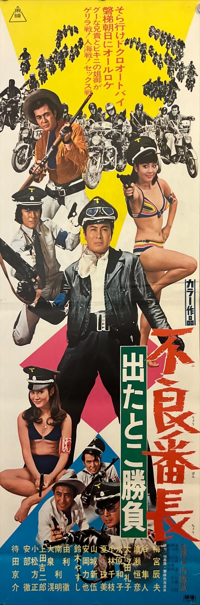This is an original Japanese speed-poster printed in 1970 for the theatrical release of Wolves of the City: Take Your Chance (不良番長 出たとこ勝負), an entry in Toei’s legendary Furyō Banchō (不良番長) delinquent/yakuza-biker series.